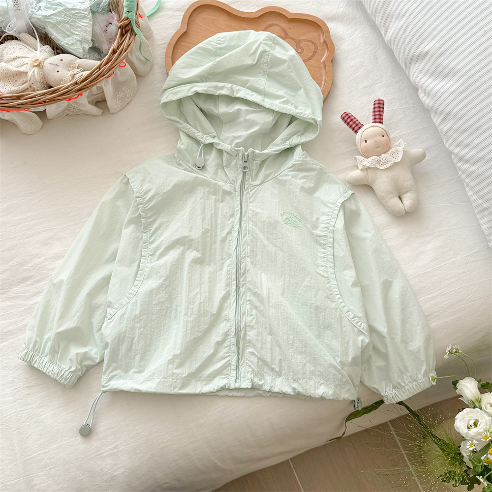 Child Xingyuan Ropa para niños Abrigo fino de verano Nuevo estilo cortavientos con capucha para niños Chaquetas de punto de color sólido para niñas Chaquetas de protección solar