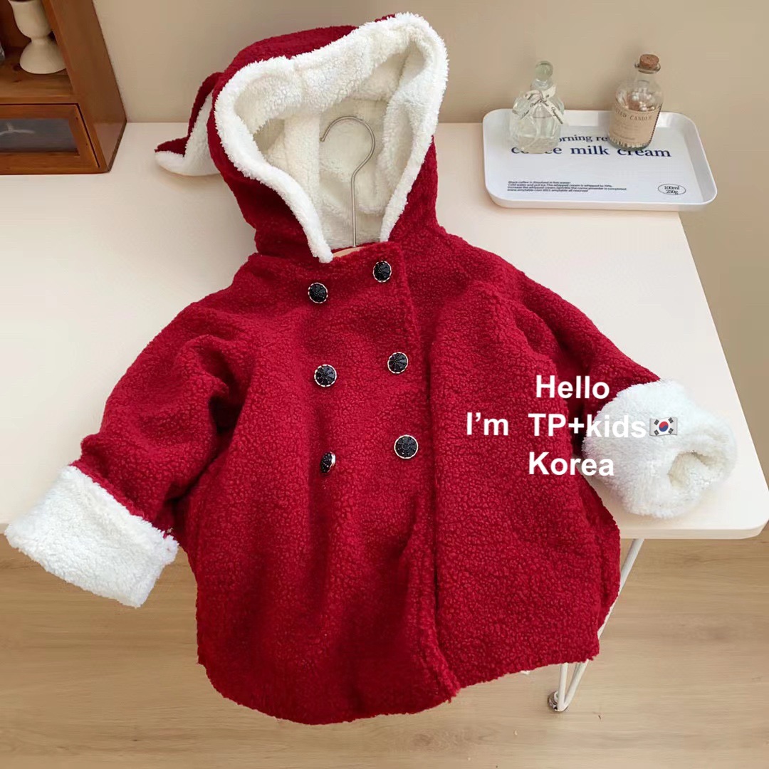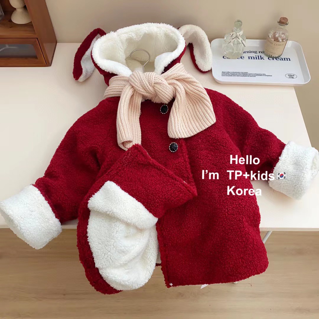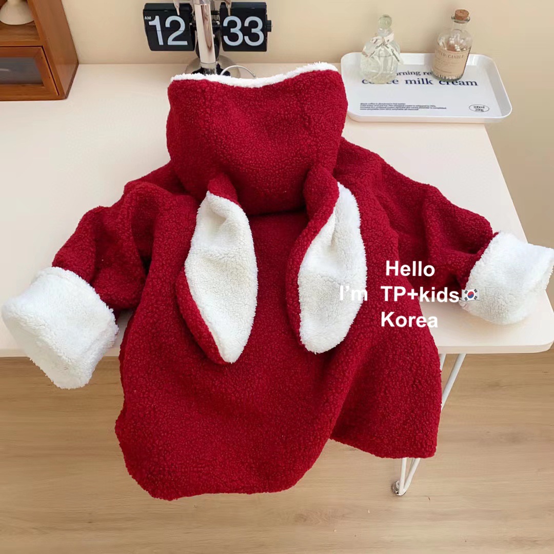 Estrella DE LOS NIÑOS ronda estilo coreano ropa la muchacha boda del bebé rojo Año Nuevo encapuchado orejas conejo rojo abrigo felpa