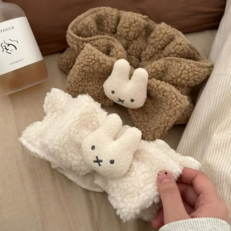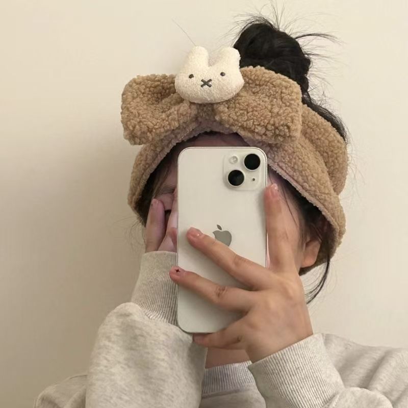 Nuevo producto a juego de color conejo de felpa con cinta para el cabello de felpa, lazo, accesorios para el cabello, máscara facial de estilo lindo de ala ancha, banda para el cabello