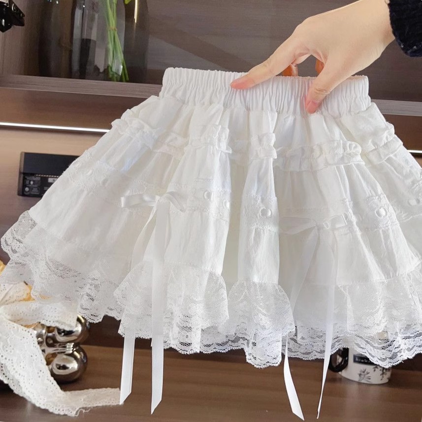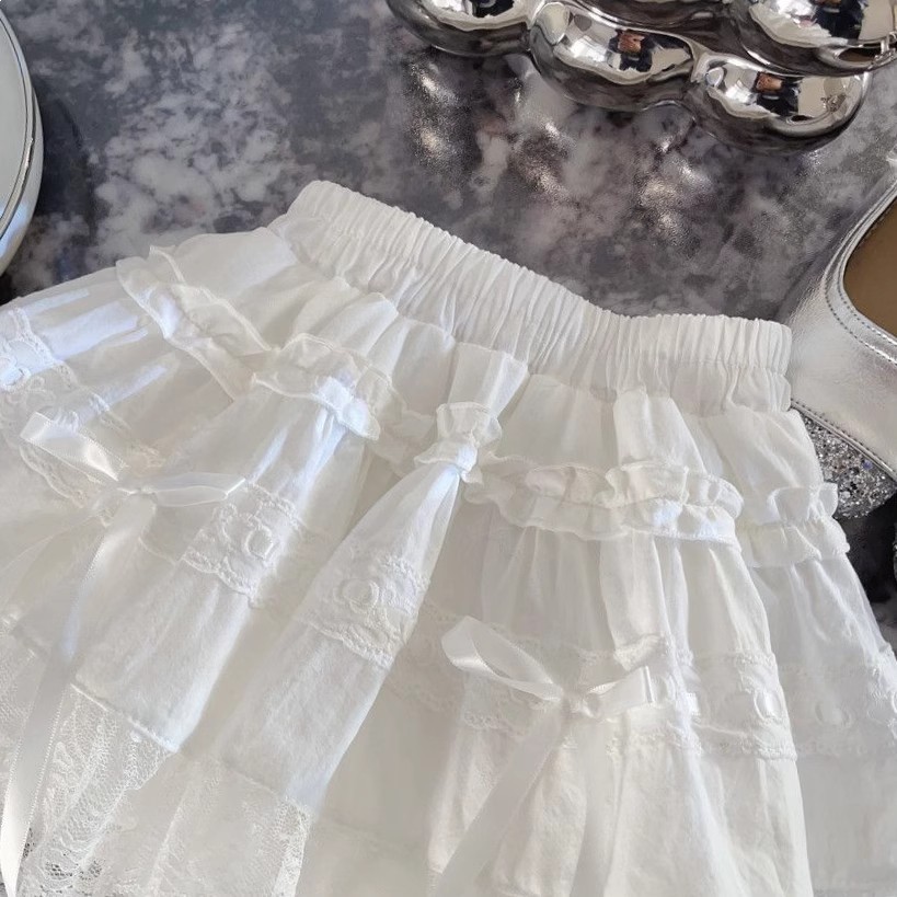 Niñas de verano blanco delgado vestido de pastel de algodón primavera y verano nuevo niño encaje de malla falda de hadas falda corta