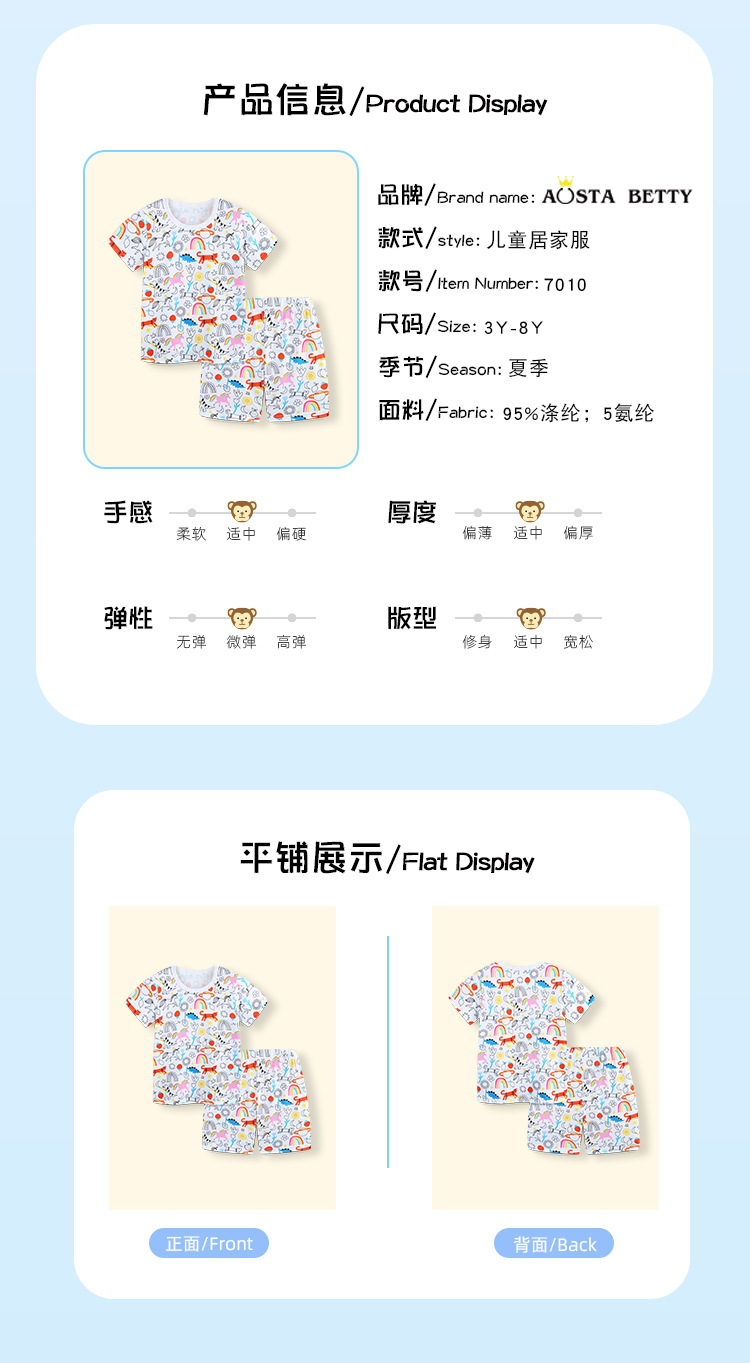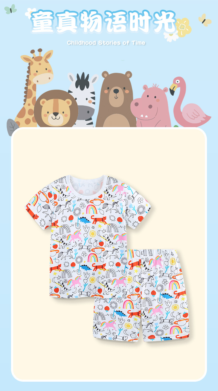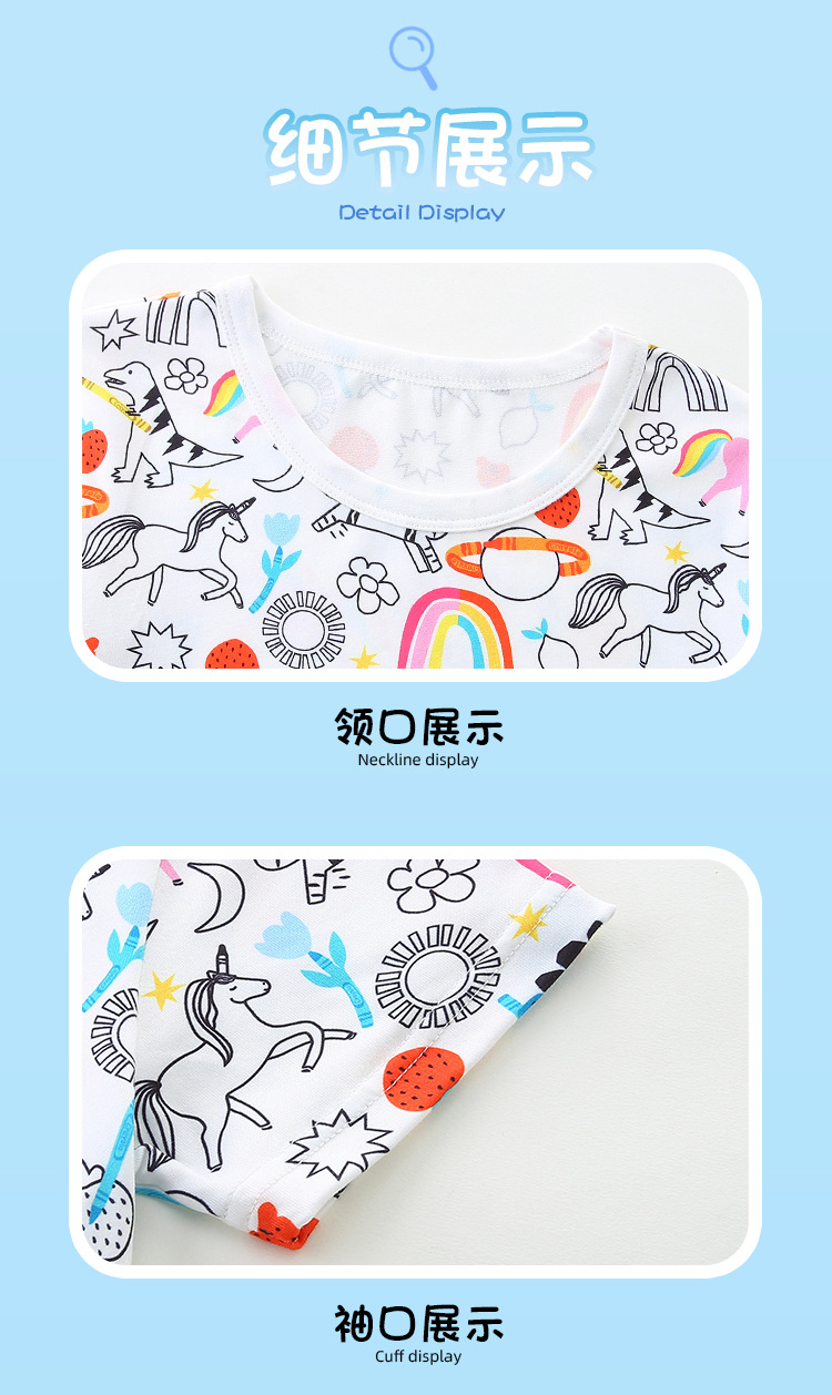 Paquete de mangas cortas para niños de estilo europeo y americano 25 nuevos juegos de ropa doméstica de niñas de verano de dos piezas de cuello redondo suministro transfronterizo de ocio