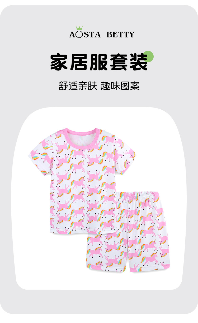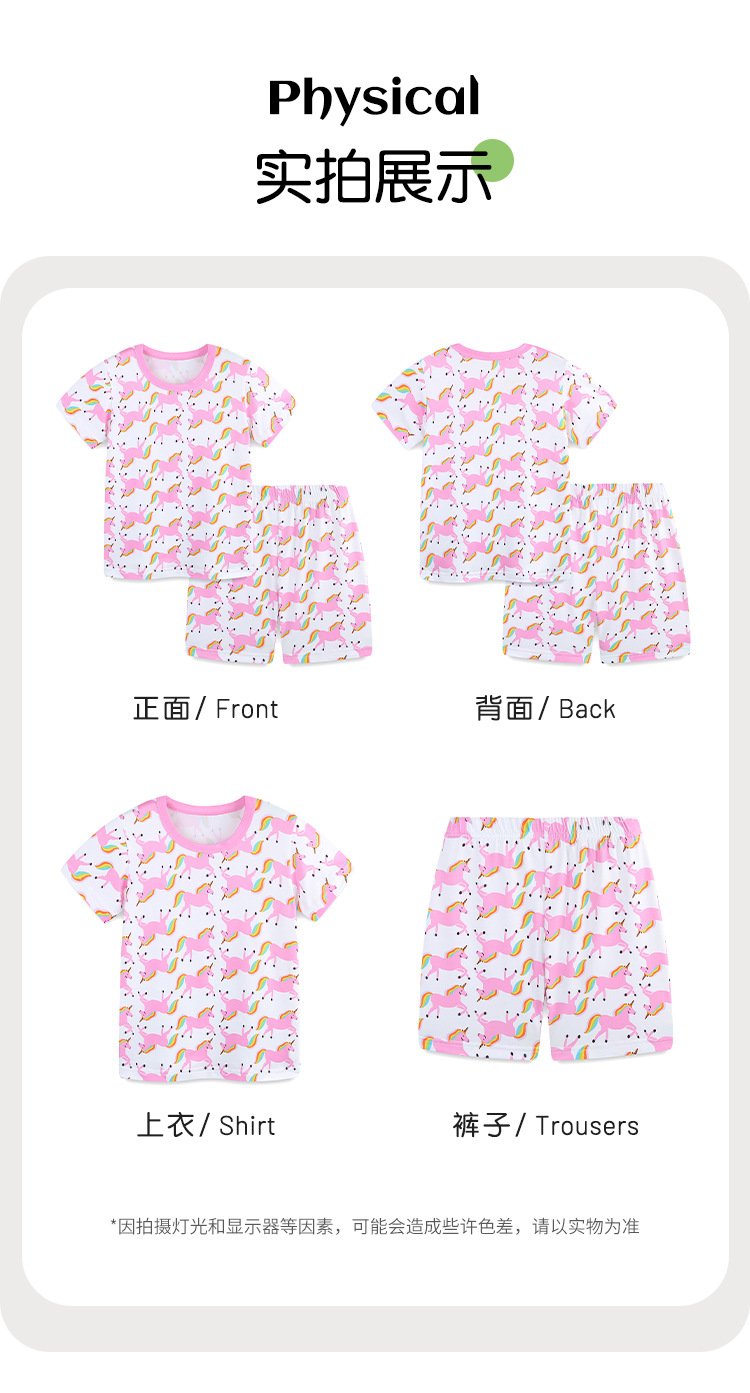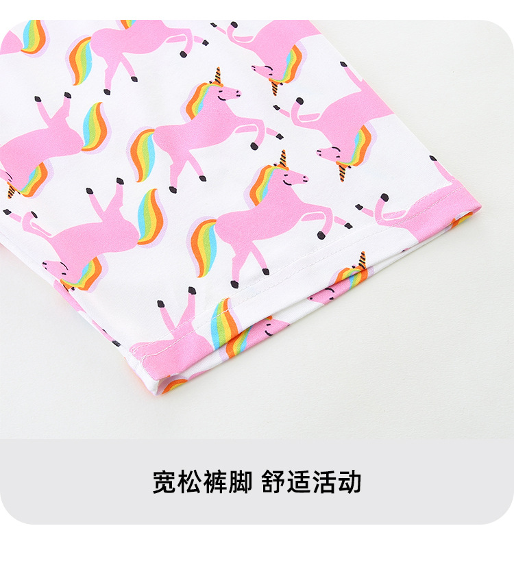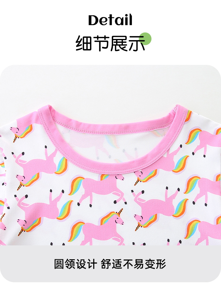 Traje de dos piezas de servicio a domicilio de manga corta para niñas de estilo europeo y americano 25 verano nuevo traje infantil estampado de unicornio lote mixto