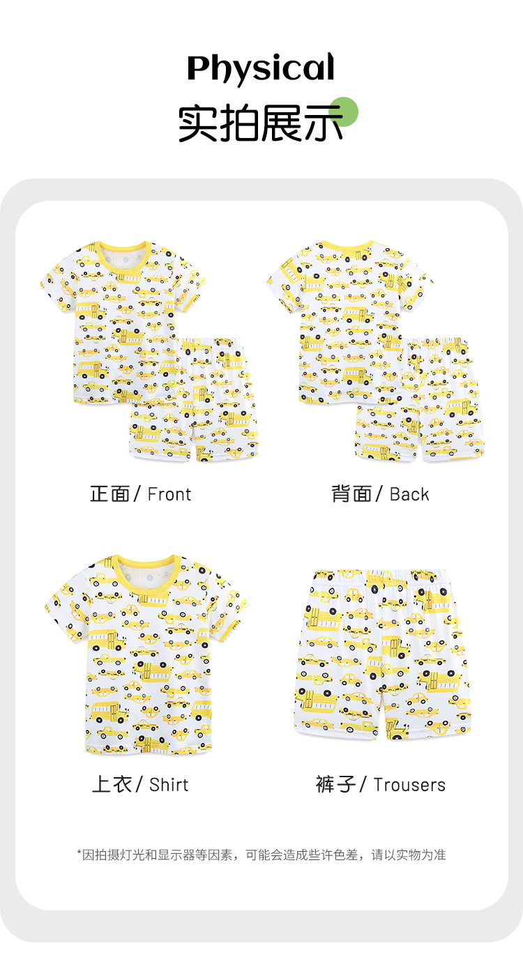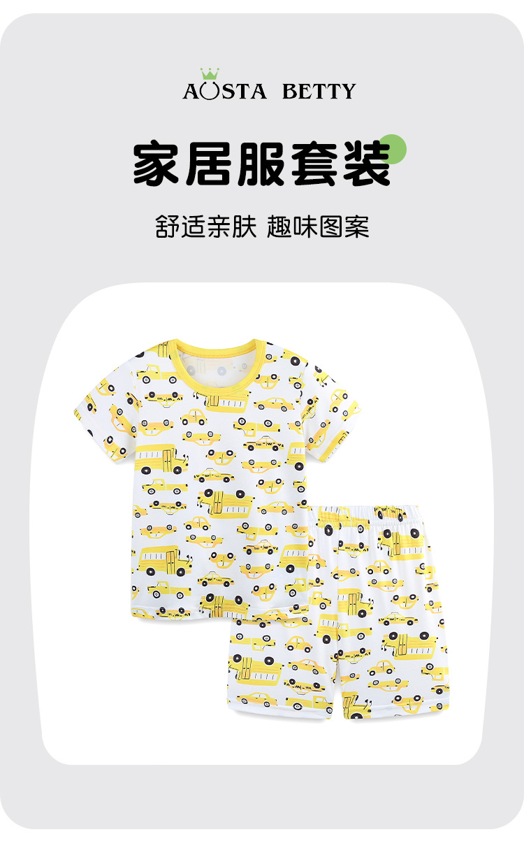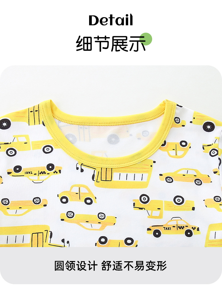 25 verano nuevo niño de mangas cortas ropa doméstica dos piezas de estilo europeo y americano impresión de automóviles de cuello redondo conjunto de niños