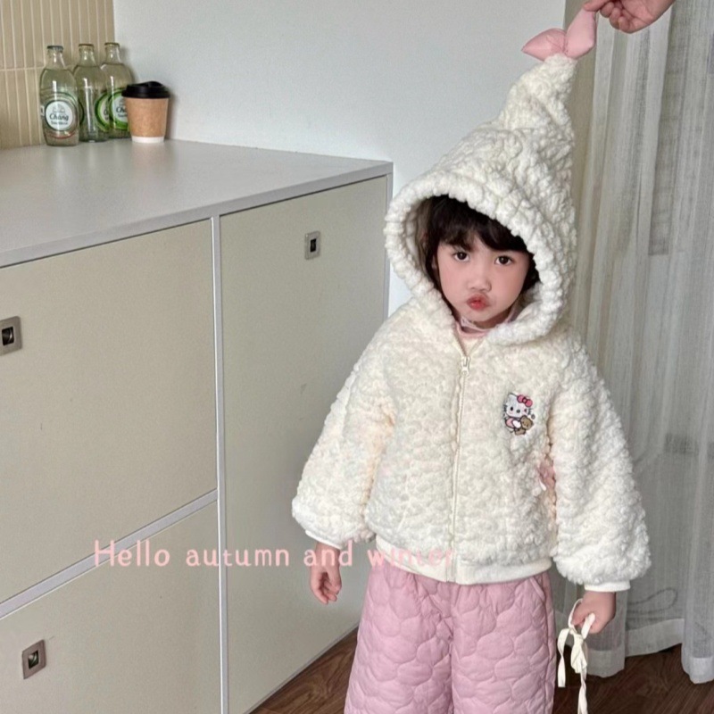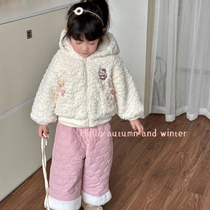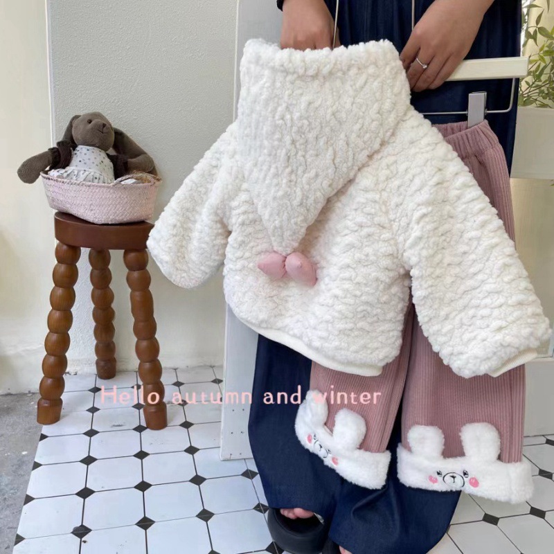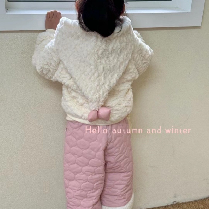 Child Star Yuan Niña Abrigo de lana Invierno Ropa coreana Ropa para niños Chicas Cute con capucha Top Pantalones Traje Ropa de invierno