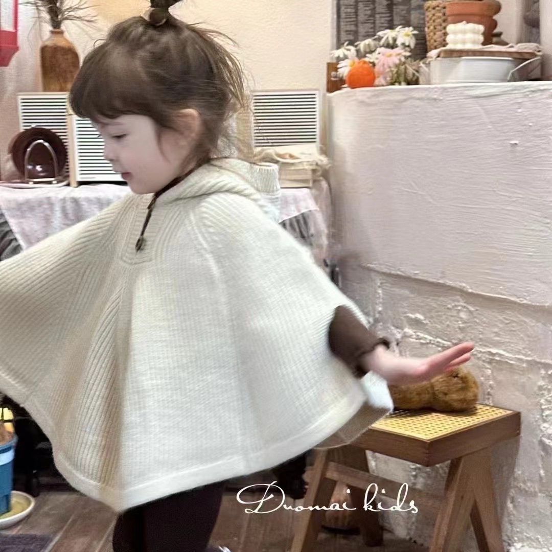 2025 otoño nuevo suéter de niña coreano bebé femenino moda exterior suelta camisa de punto con capuz abrigo abrigo abrigo