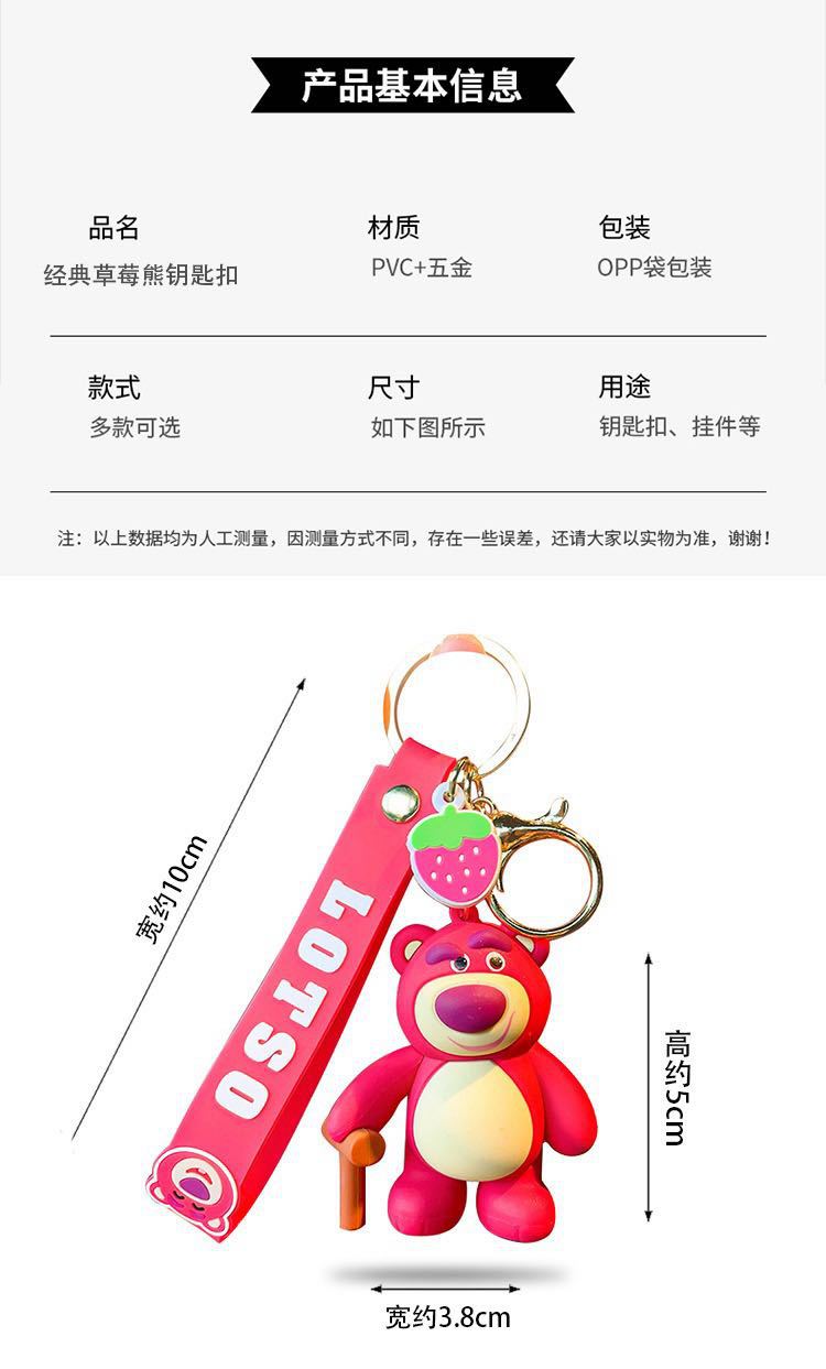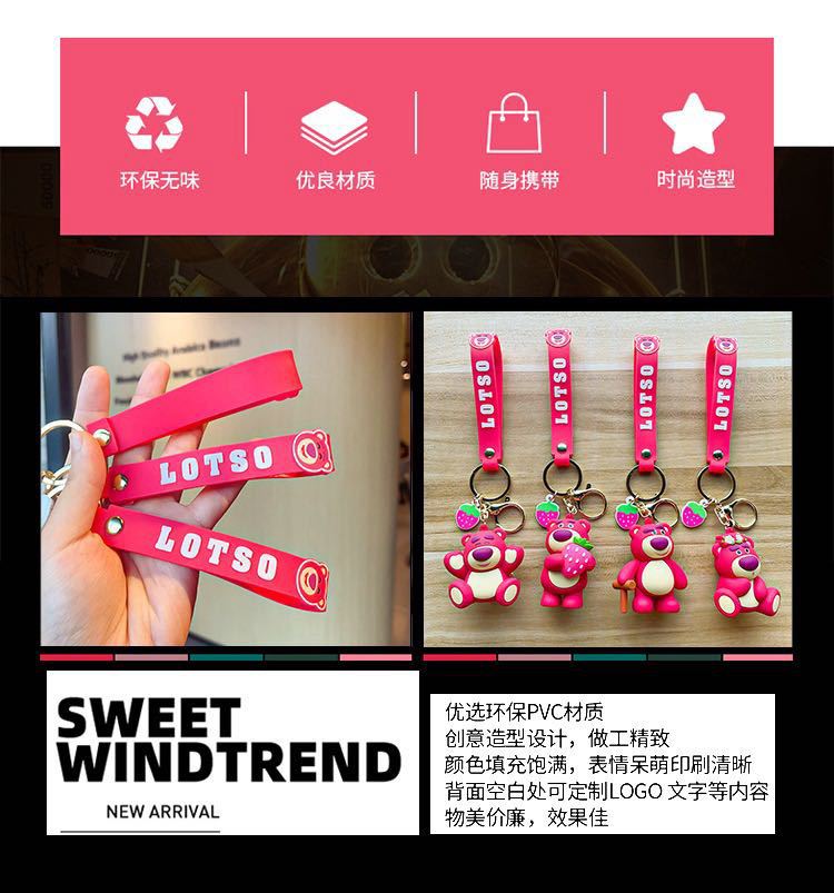 Oso de fresa dibujos animados llavero de silicona oso muñeca colgante coche llavero adornos muñeca máquina regalo al por mayor