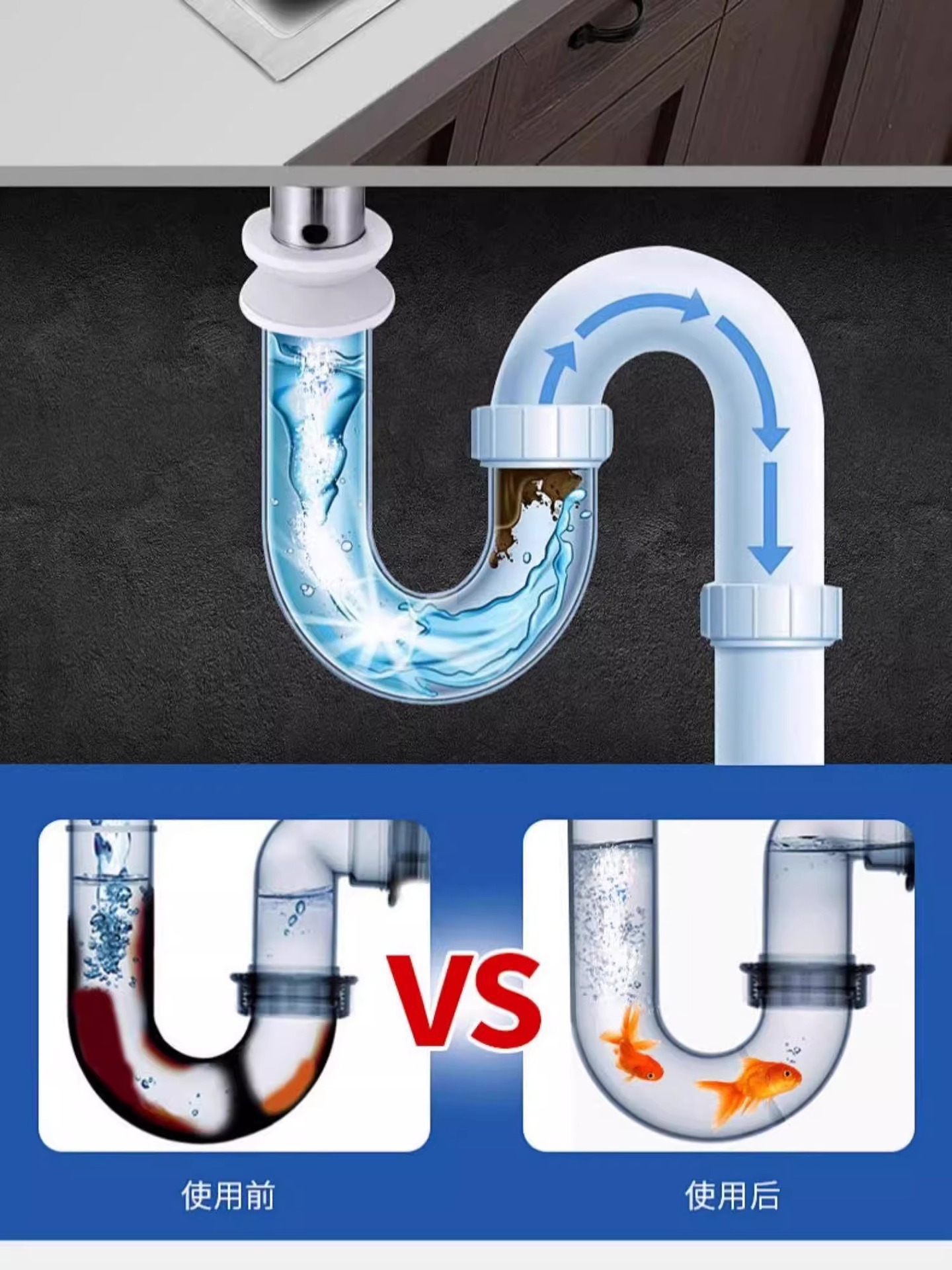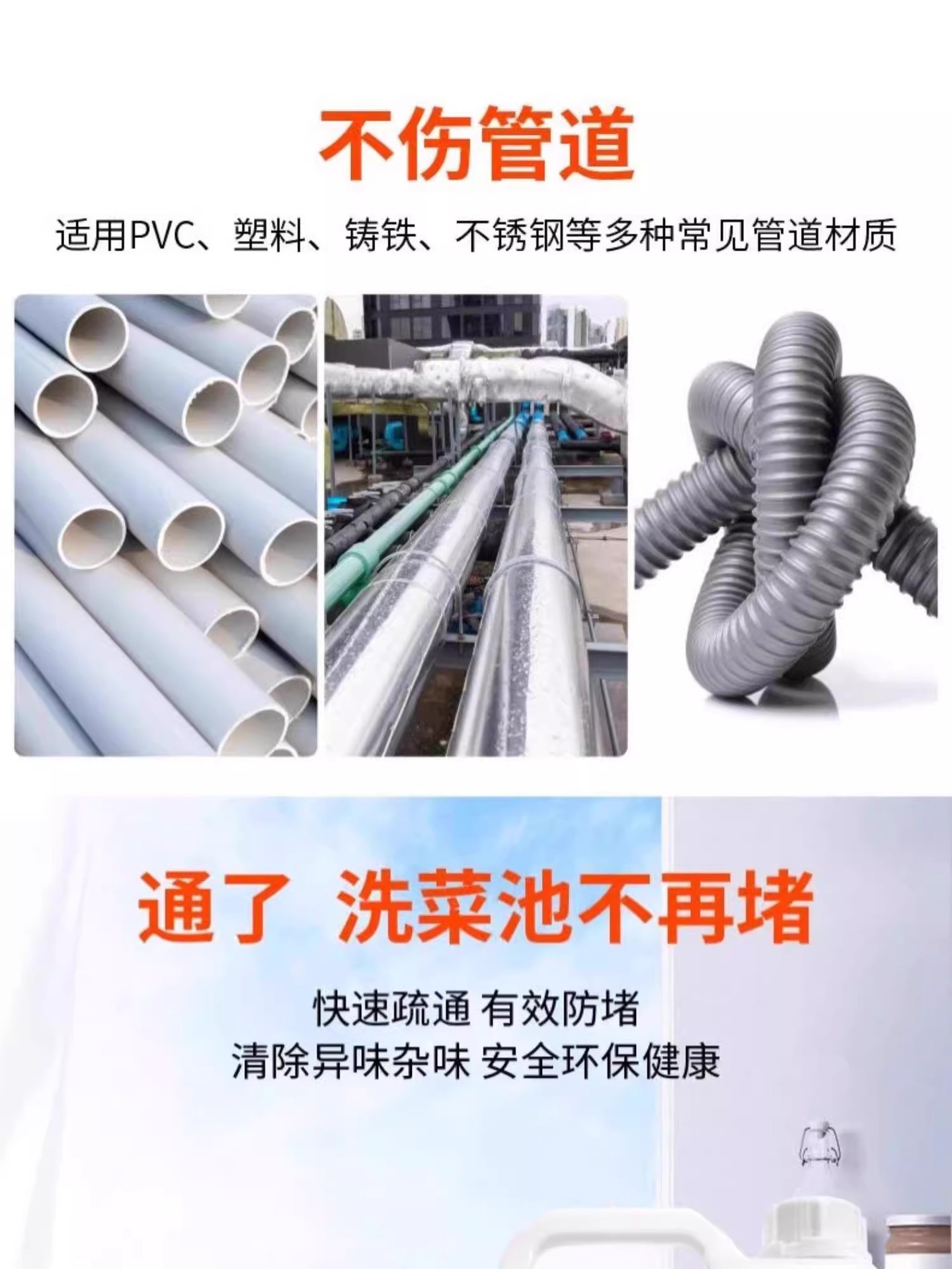 El agente de dragado de tuberías disuelve fuertemente el drenaje del piso bloqueado del inodoro de la cocina