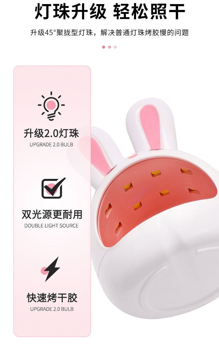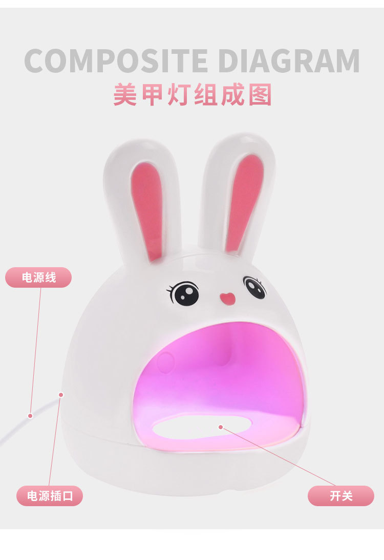 Mini lámpara de fototerapia de uñas lindo conejo esmalte de uñas pegamento lámpara de hornear portátil de mano máquina de fototerapia doméstica entrega de una sola pieza