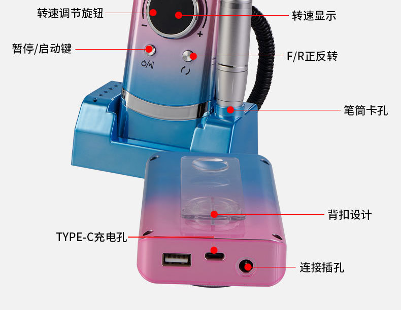 Herramienta de manicuras doméstica de manicuras conveniente 45000RPM ajustable amolador profesional