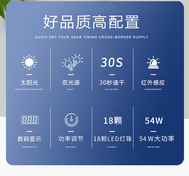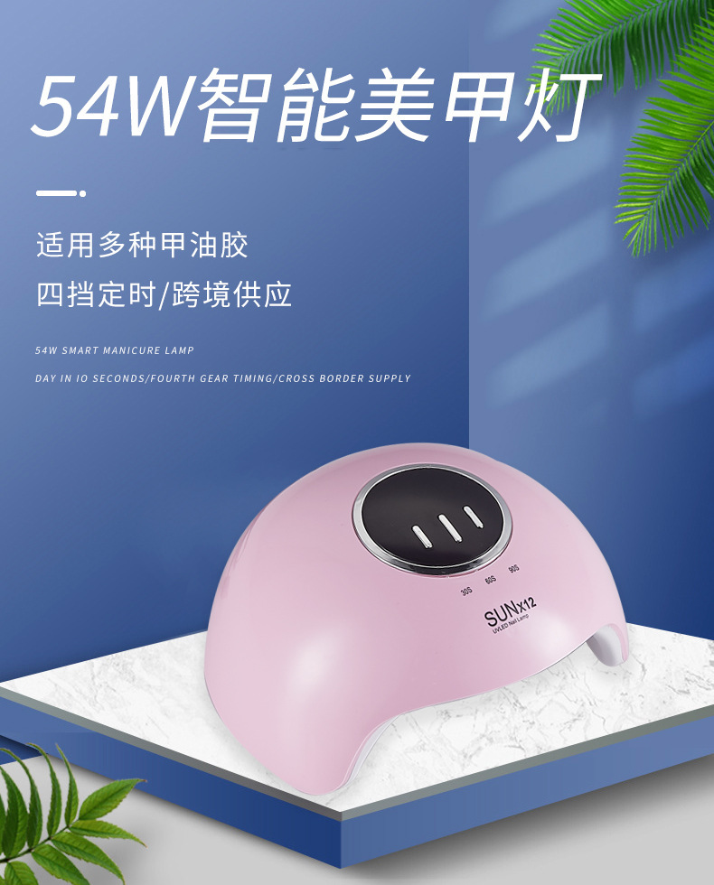 Lámpara de uñas al por mayor 54W lámpara de cocción de uñas de inducción pegamento de esmalte de uñas de secado rápido lámpara LED lámpara de uñas de fototerapia de mano no negra transfronteriza