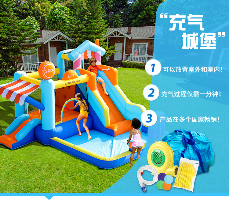 Castillo Inflable para Niños Doctor Dolphin, Trampolín Pequeño, Tobogán Acuático Inflable, Cama Elástica Inflable para Fiestas al Aire Libre, Castillo Inflable para el Hogar