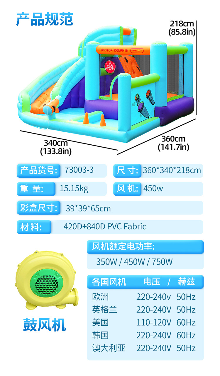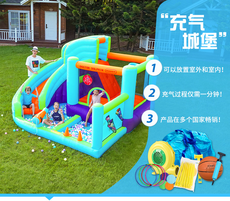 Dr. Dolphin Castillo inflable interior tobogán inflable hogar pequeño parque de trampolín inflable con chorro de agua