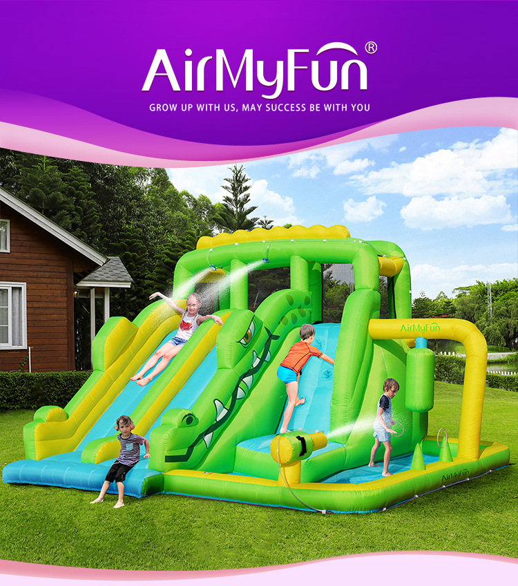 AMF | Castillo de rociado de agua para niños Casa pequeña tobogán inflable fiesta interior rociado de agua parque infantil castillo inflable