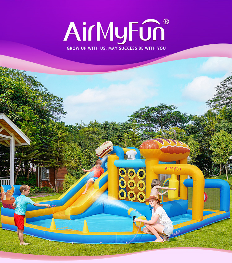 AMF | Hogar para niños castillo pequeño castillo inflable rociado de agua fiesta interior rociado de agua parque infantil tobogán inflable