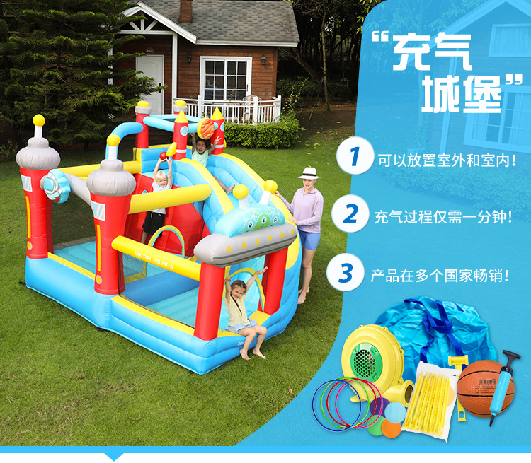 Dr. Dolphin | Castillo inflable para niños en casa Pequeño trampolín inflable interior Toboganes Castillo Paradise Camo de trampolín para el hogar