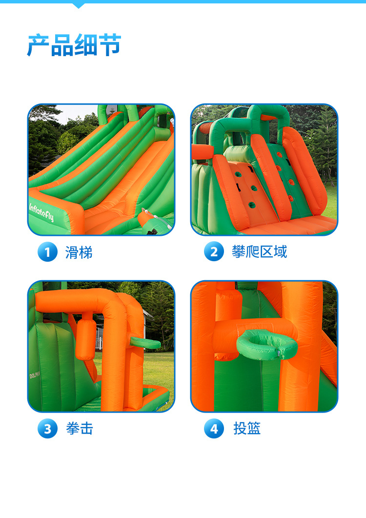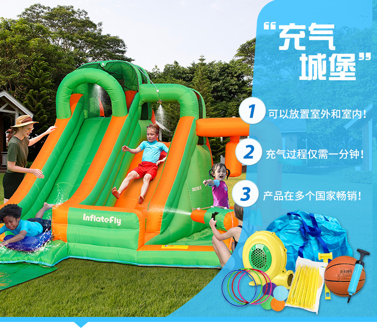 Dr. Dolphin Home Spray Doble tobogán Castillo inflable Parque de atracciones para niños Trampolín pequeño para jugar con el agua Fuerte inflable antideslizante