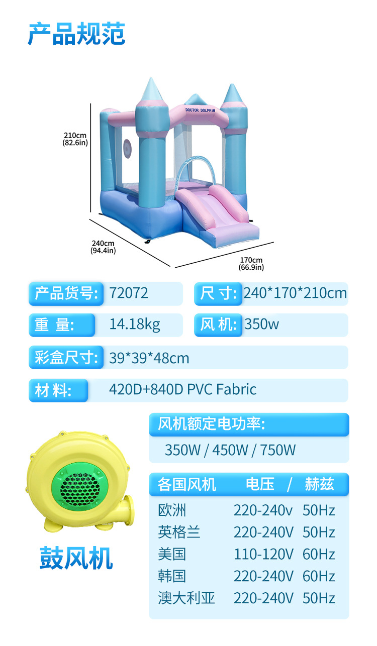 Dr. Pig Inflatable Castle Kids Indoor Playground Inflatable Slide Trampoline Jugues pequeños castillos inflables domésticos
