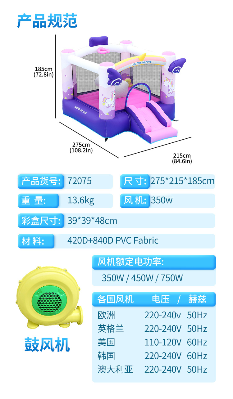 Dr. Pig Child Inflatable Castle Small Home Trampoline Inflatable Slider Jugues Indoor and Outdoor Party Inflatable Castle