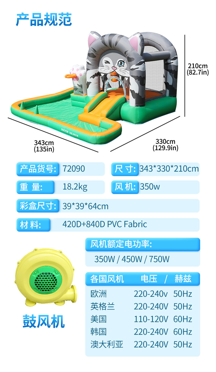 Doctor Dolphin | Castillo inflable infantil interior y exterior para niños pequeña cama de salto inflable para niños gatito cama de salto para niños Castillo