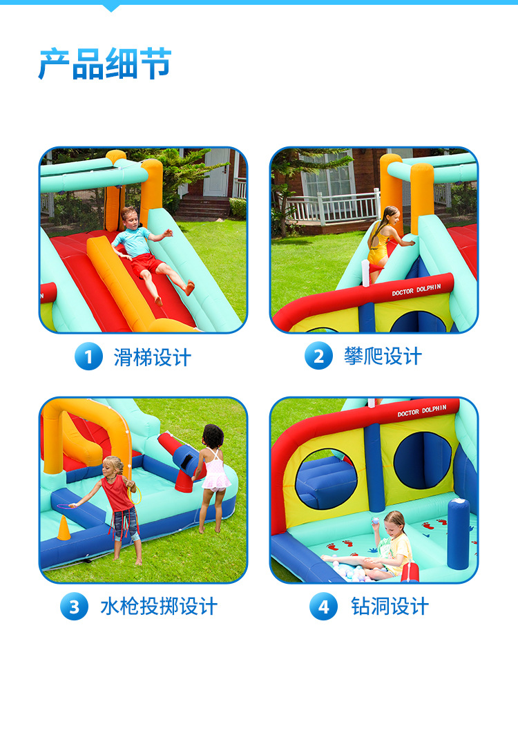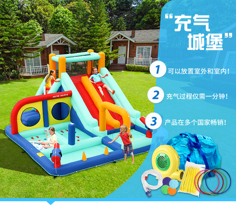 Castillo Inflable Infantil Doctor Dolphin, Castillo de Juegos con Tobogán Acuático y Rociador de Agua, Castillo para el Hogar