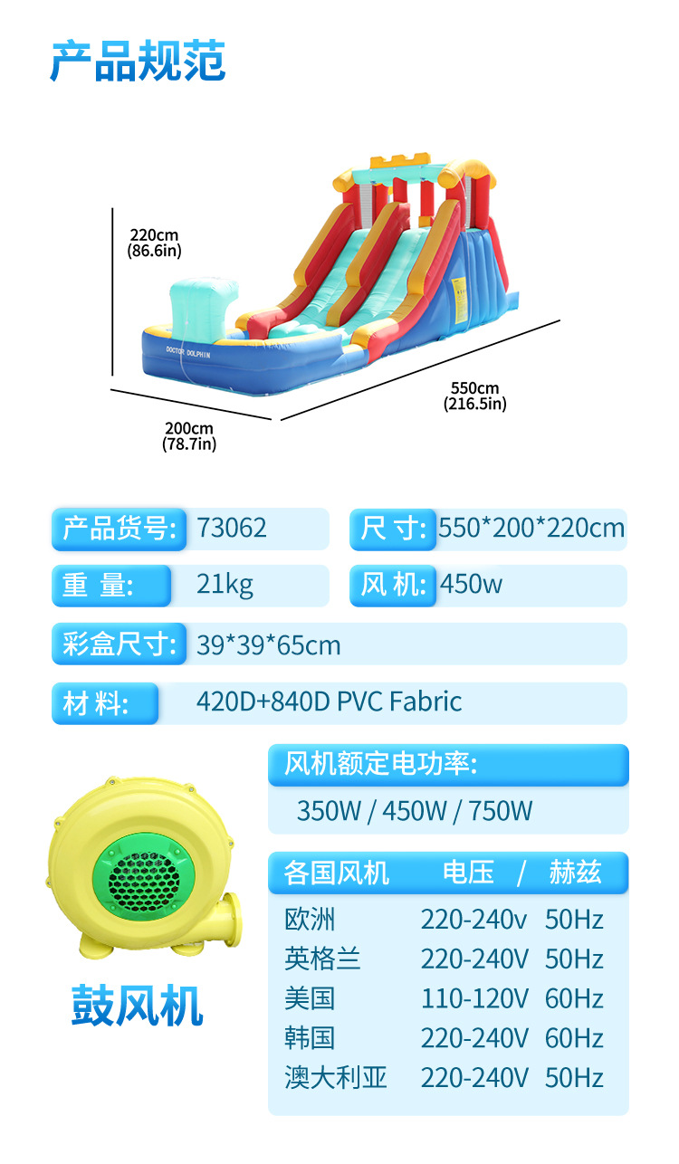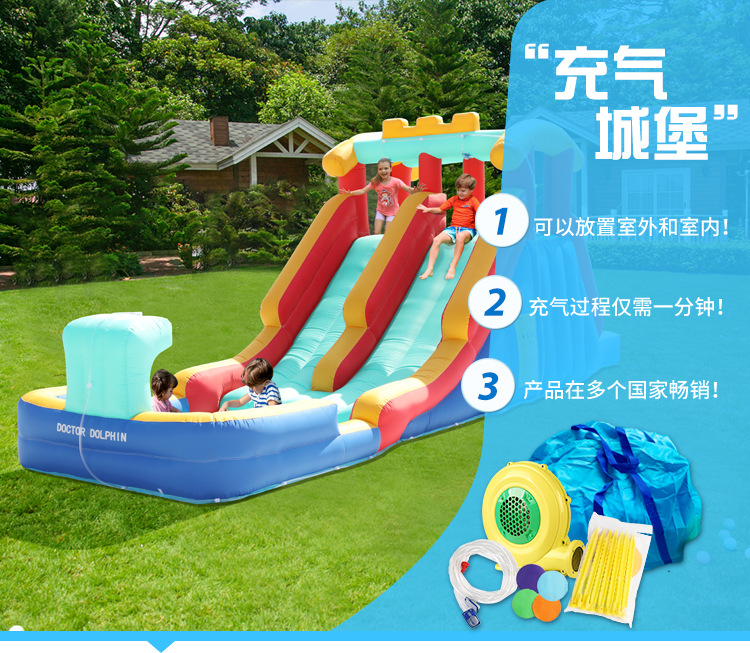 Castillo inflable para niños Doctor Dolphin, casa pequeña, parque infantil para niños, trampolín inflable para fiestas en interiores y exteriores, tobogán acuático