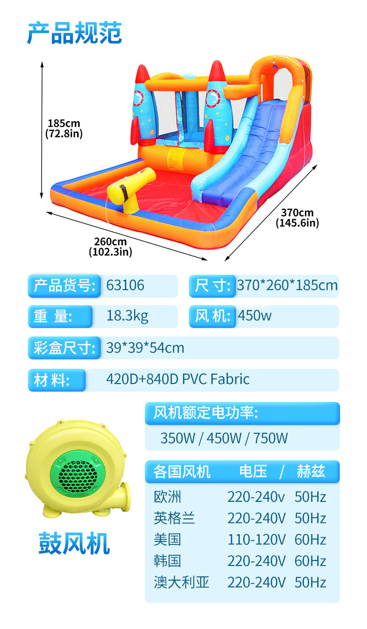 Castillo inflable para niños, tobogán acuático pequeño, trampolín inflable, castillo inflable de tela Oxford para uso doméstico