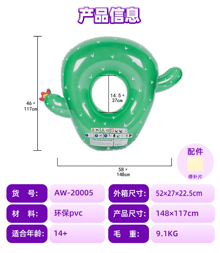 AMF | Anillo de natación Internet celebridad adultos niños grande inflable flotante anillo de agua juguetes axila cactus anillo de natación