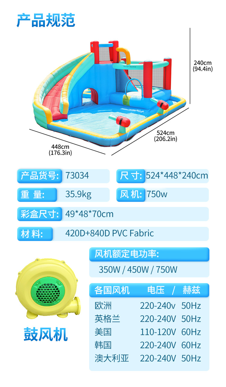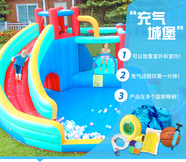 Castillo inflable Doctor Dolphin, castillo inflable pequeño para niños con rociador de agua para interiores, trampolín inflable para el hogar, tobogán, piscina de olas
