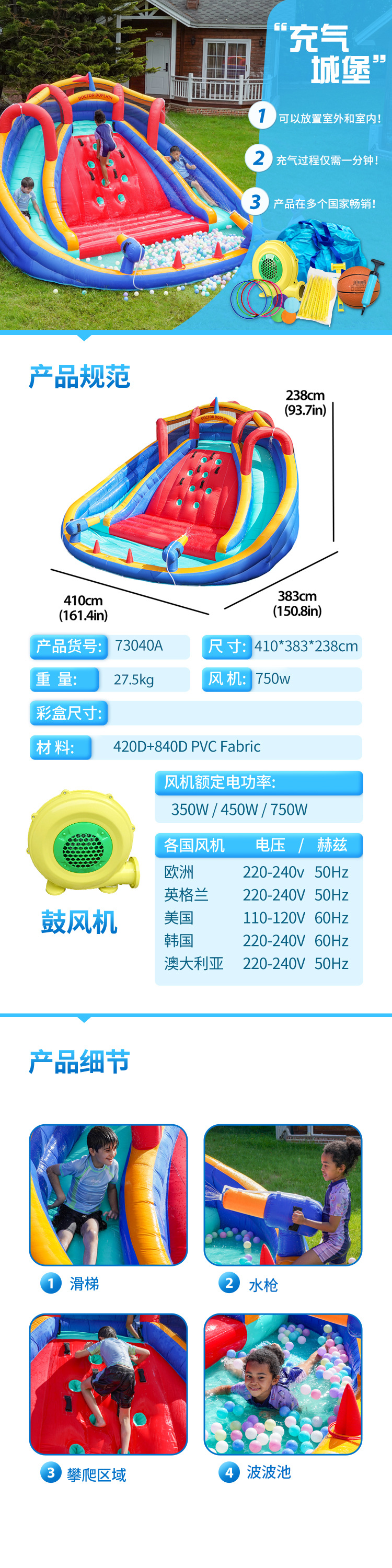 Castillo Acuático Inflable para Niños Doctor Dolphin, Tobogán, Trampolín, Juguete para Fiestas en Interiores y Exteriores, Castillo Acuático para el Hogar