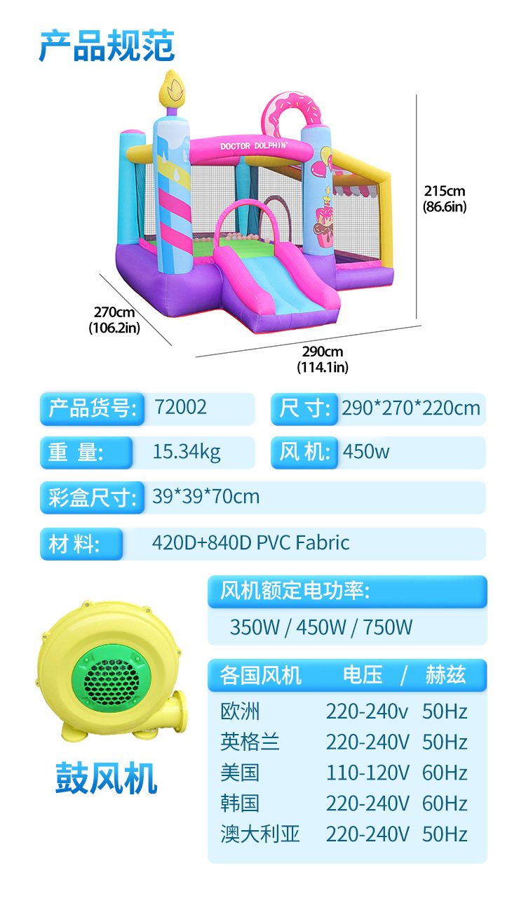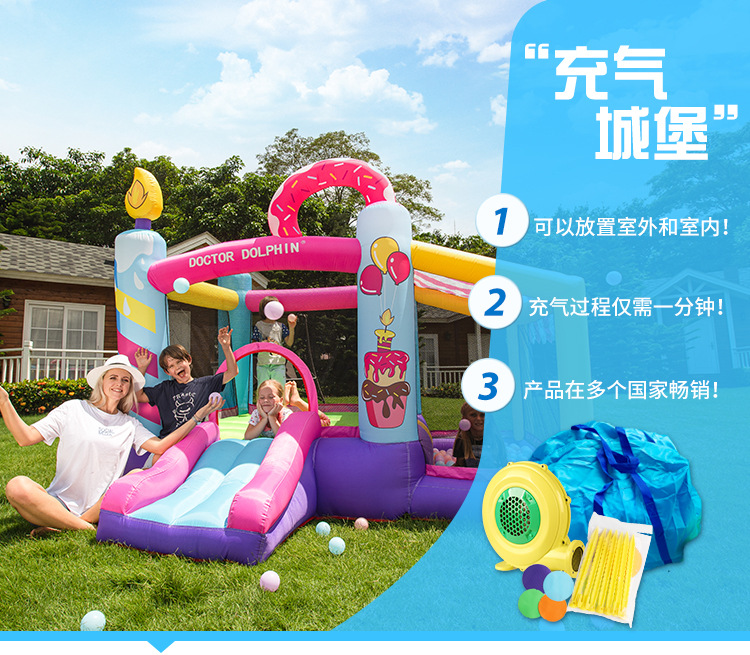 Castillo Inflable Infantil Doctor Dolphin, Mini Casa, Trampolín Pequeño, Tobogán, Área de Juegos Interior, Castillo Inflable