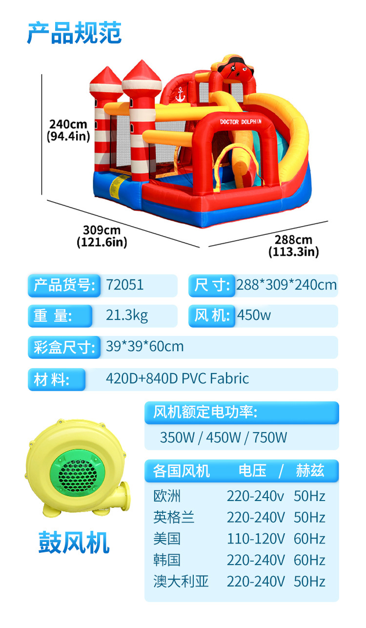 Castillo inflable infantil Doctor Dolphin, estilo pirata y pulpo, trampolín inflable para uso doméstico, tobogán, castillo inflable para niños