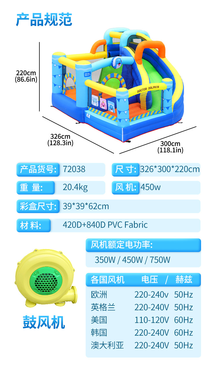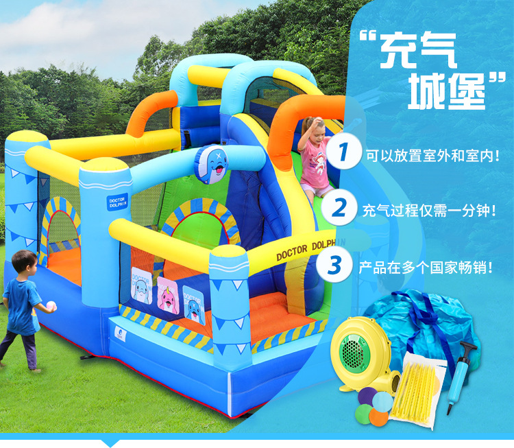 Castillo Inflable Doctor Dolphin, en Existencia, para Interiores y Exteriores, Tobogán Inflable, Trampolín Infantil, Castillo Inflable Combinado con Tobogán y Trampolín para el Hogar