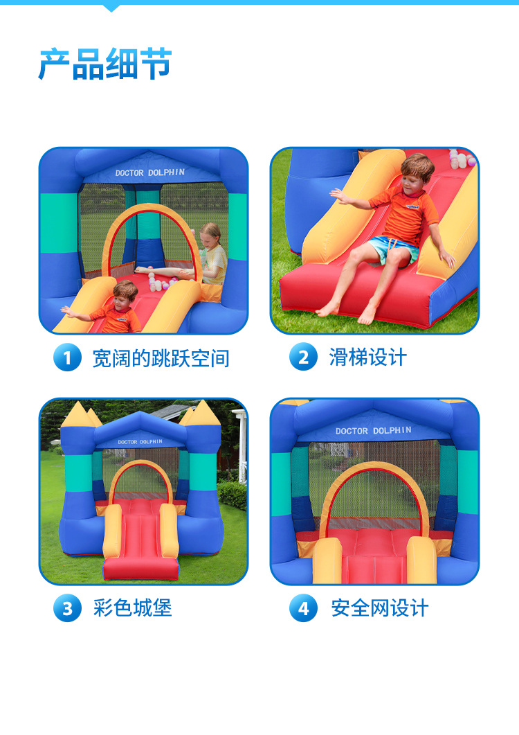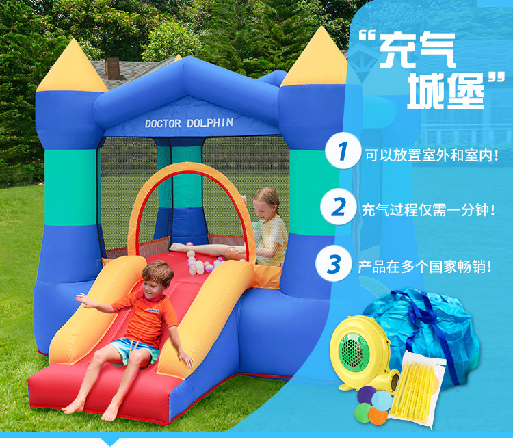 Castillo Inflable Infantil Doctor Dolphin, Trampolín con Tobogán para Uso Doméstico, Castillo de Tela Oxford para Interiores, Pequeñas Instalaciones de Juegos para Niños