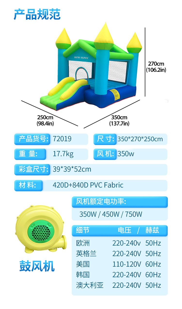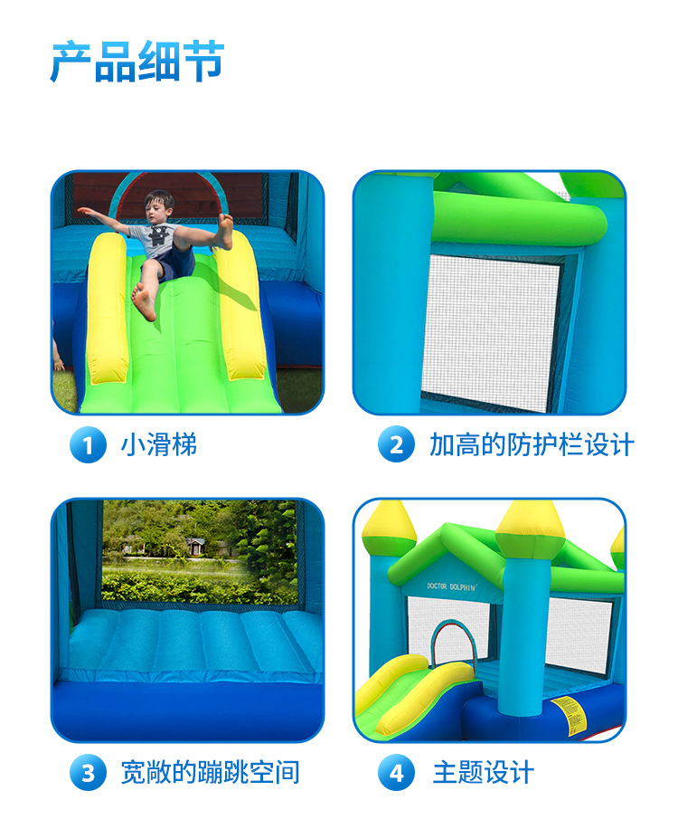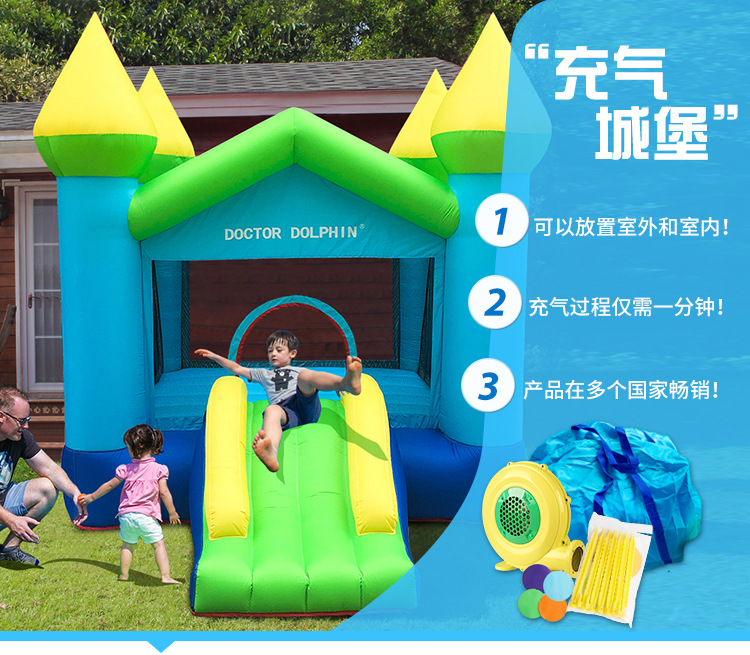 Doctor Delfín | Castillo inflable para niños, trampolín, tobogán pequeño para interiores, parque de atracciones para fiestas en casa, castillo infantil