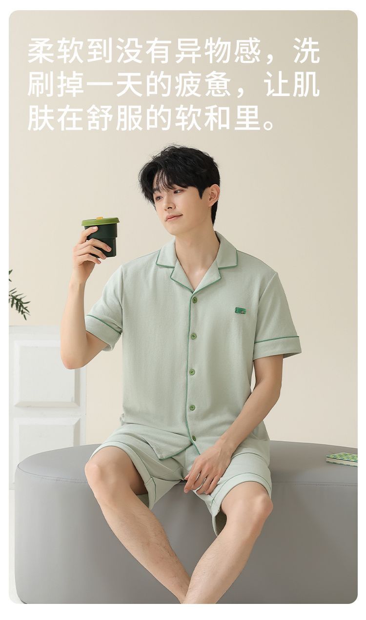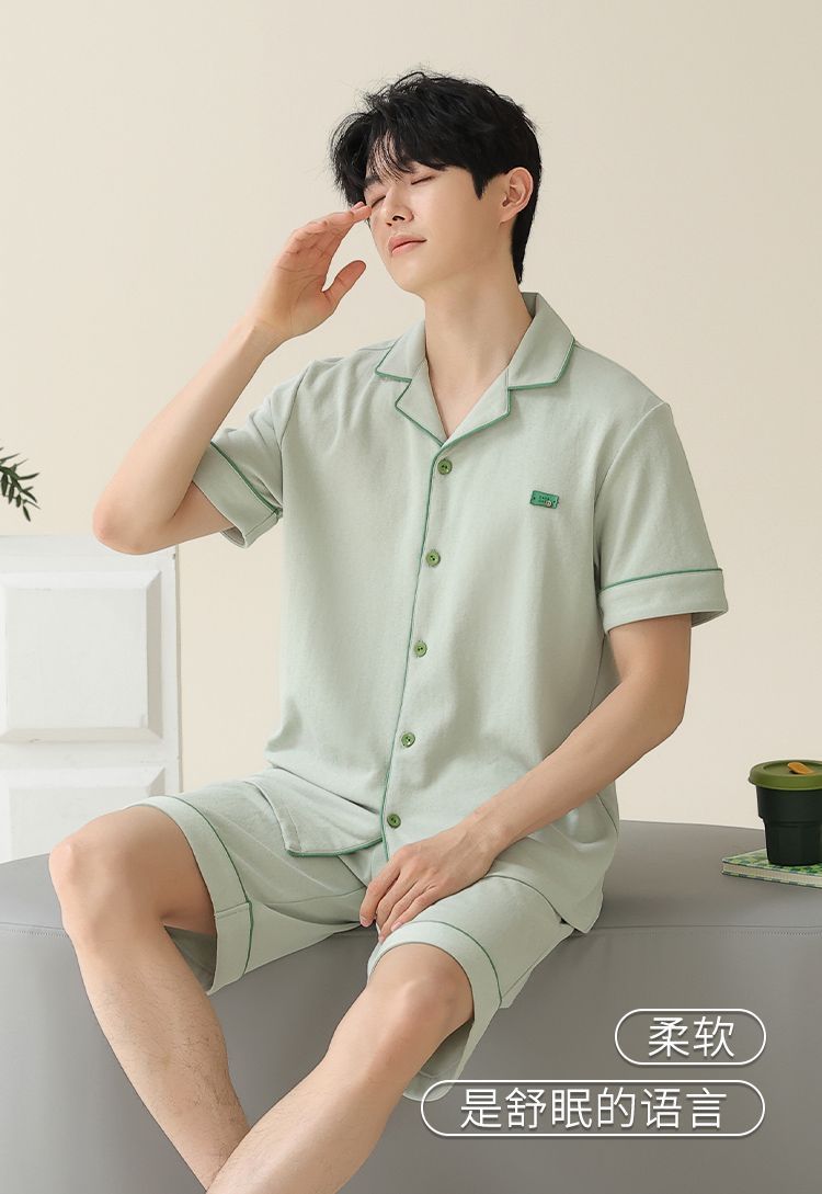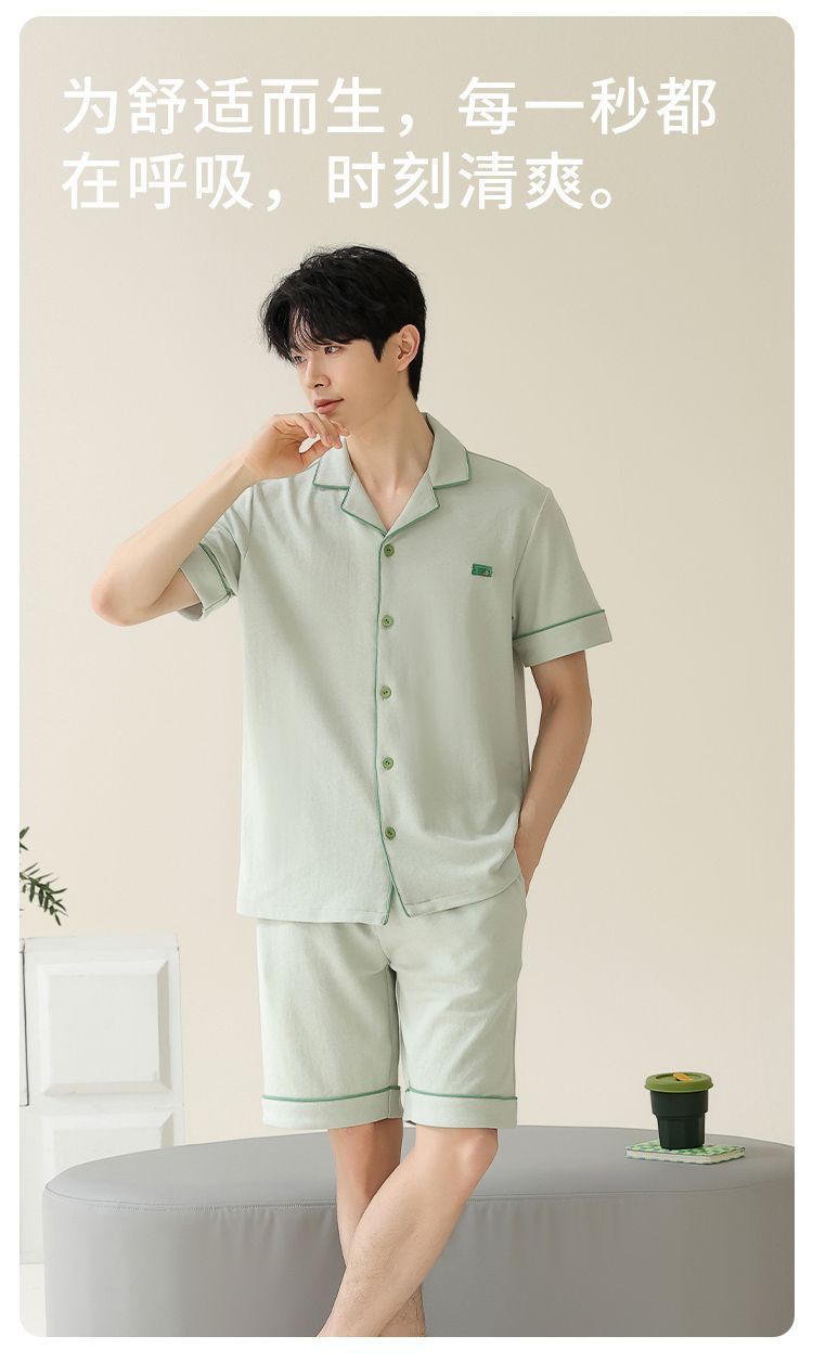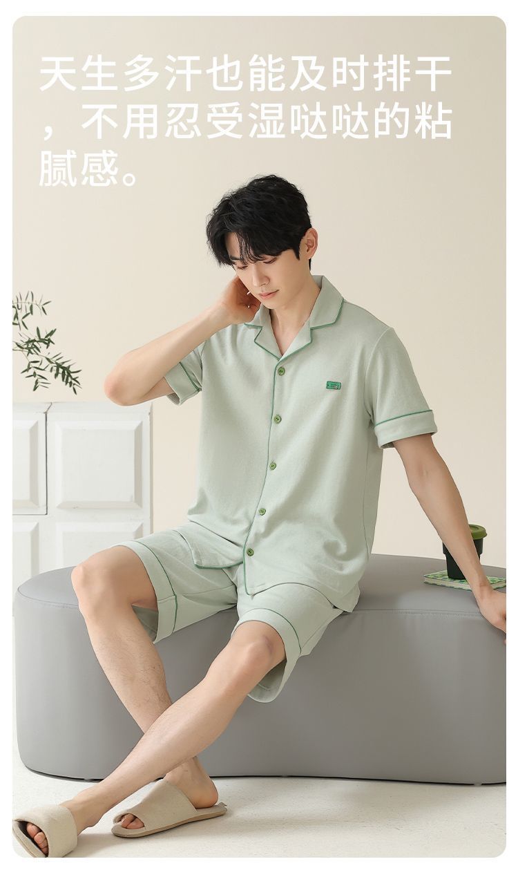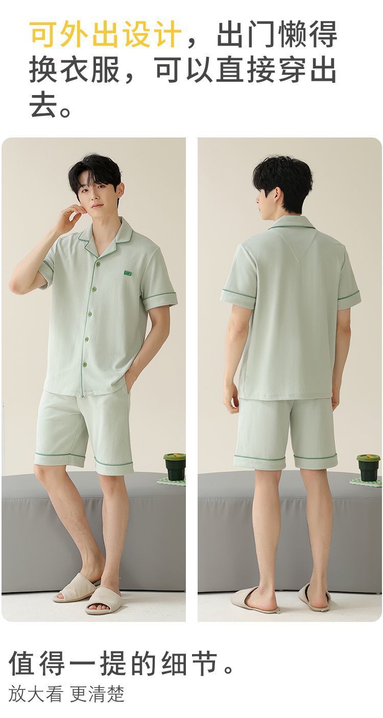 Pajamas de algodón para hombres, pantalones cortos de manga corta delgados de verano, juveniles se pueden usar con un conjunto de ropa de casa grande.