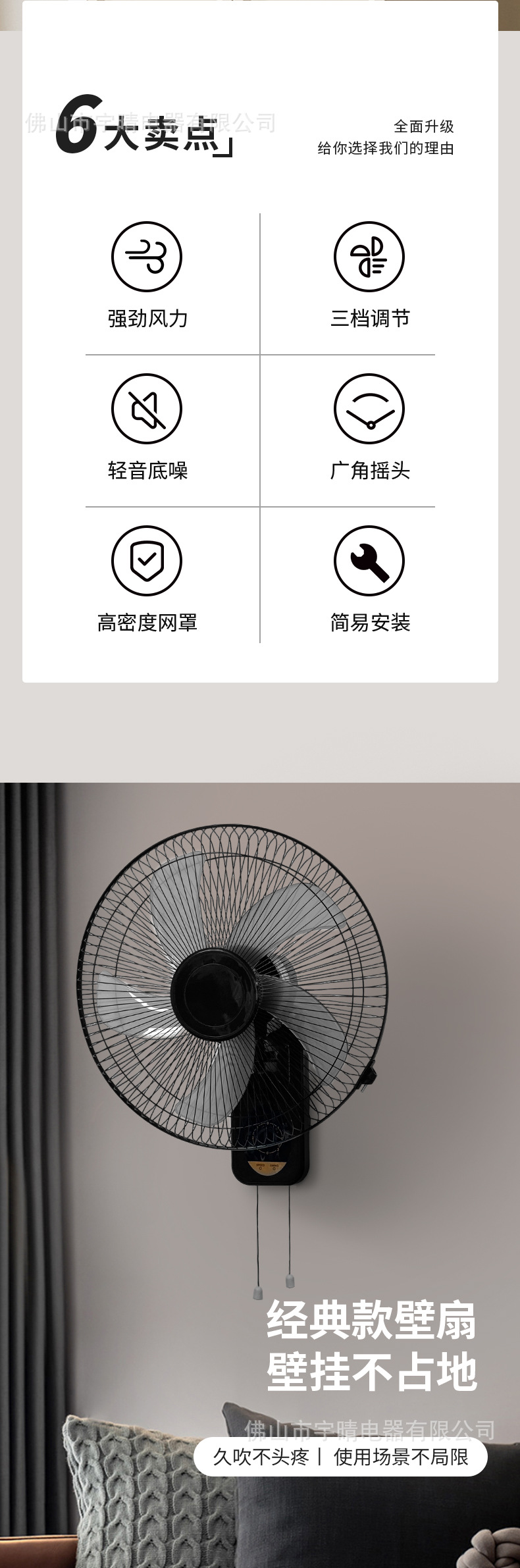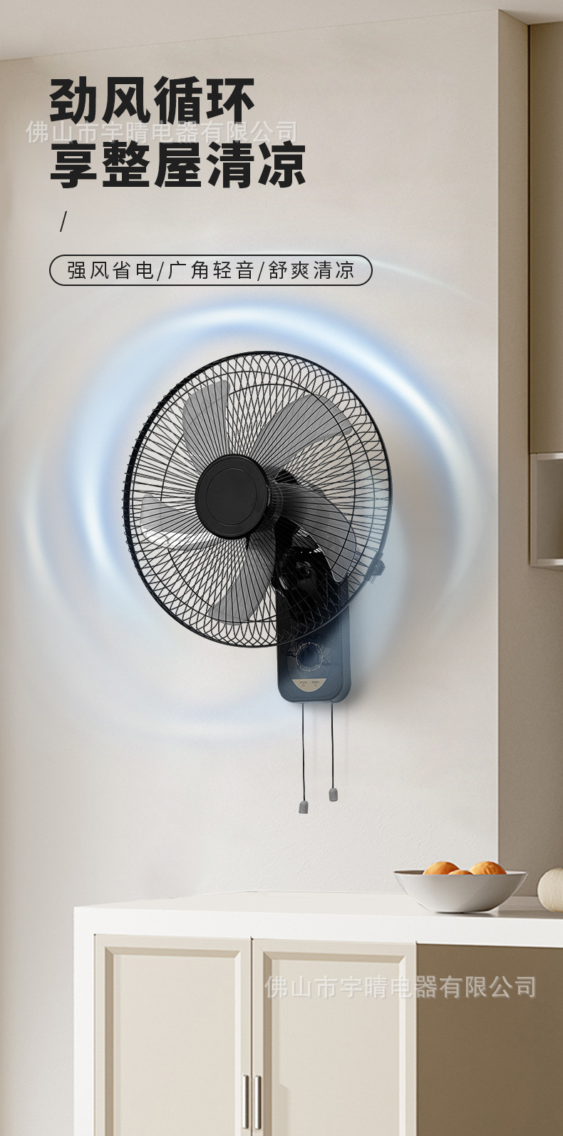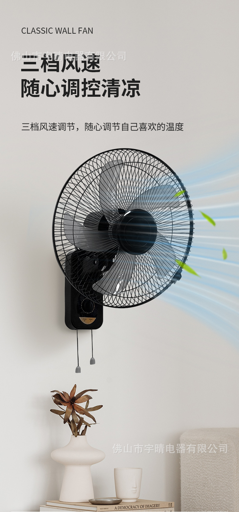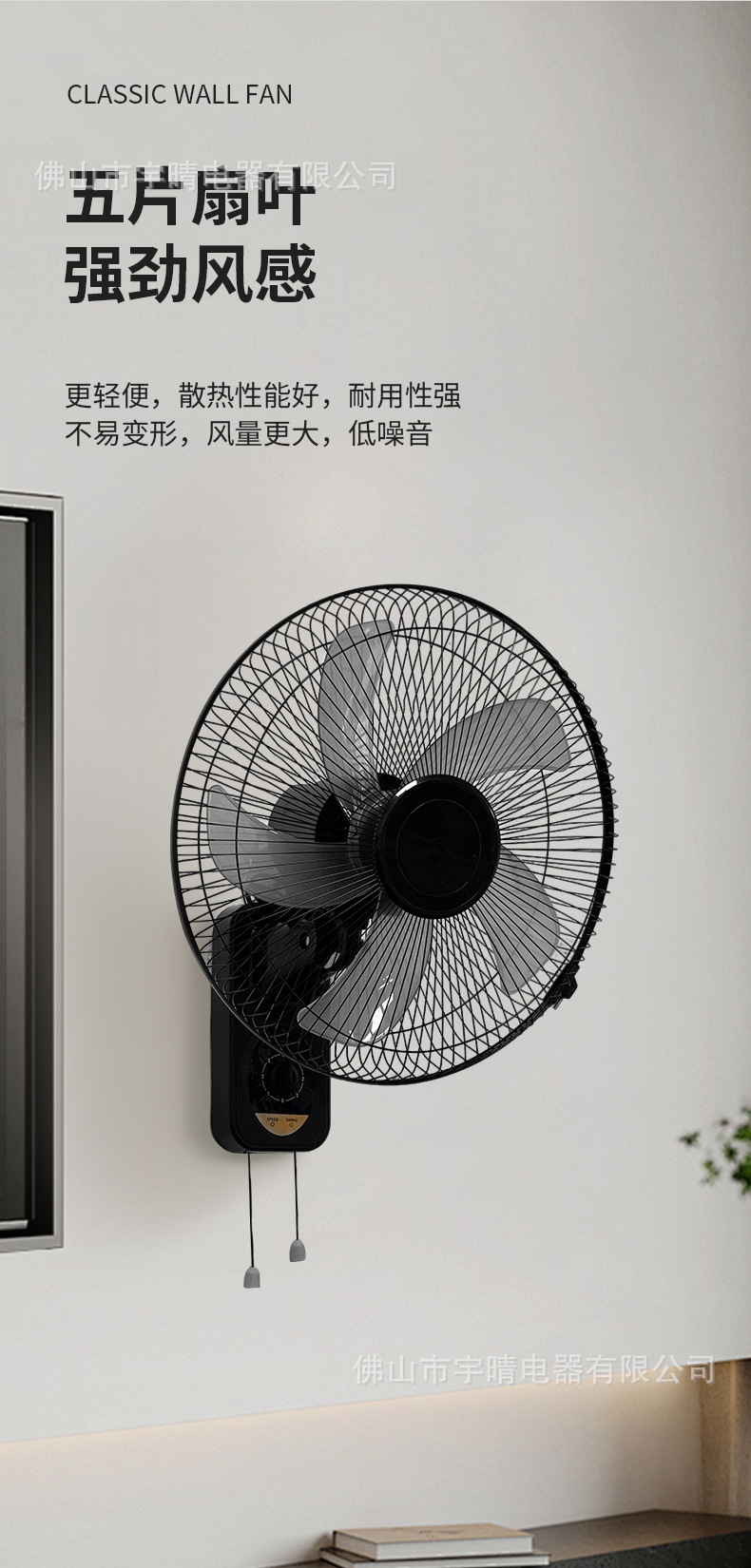 Ventilador de pared eléctrico transfronterizo, ventilador oscilante de pared para dormitorio, ventilador de pared silencioso con viento fuerte, ventilador de pared