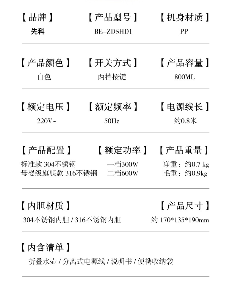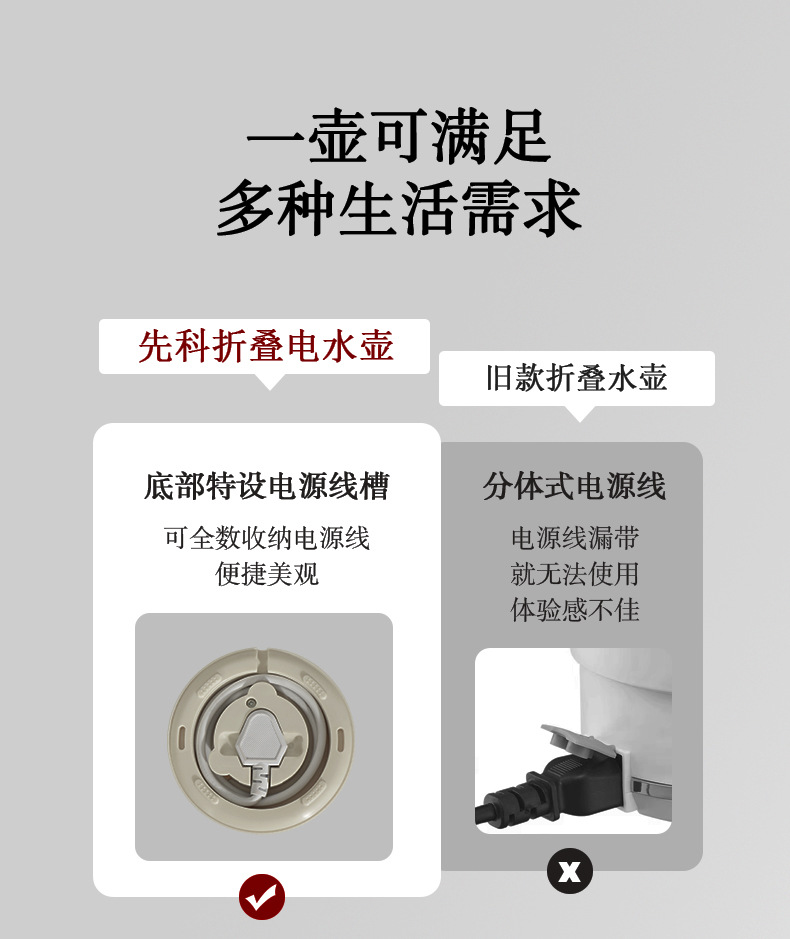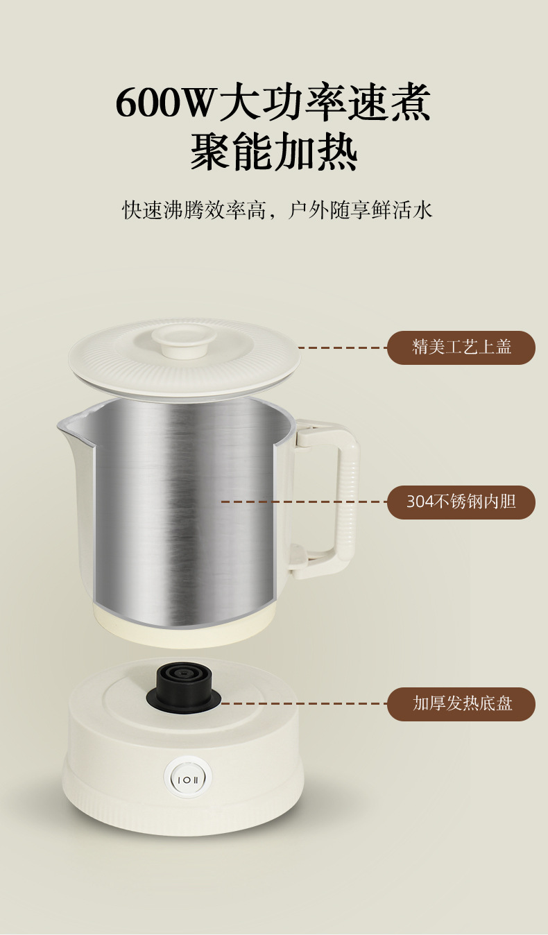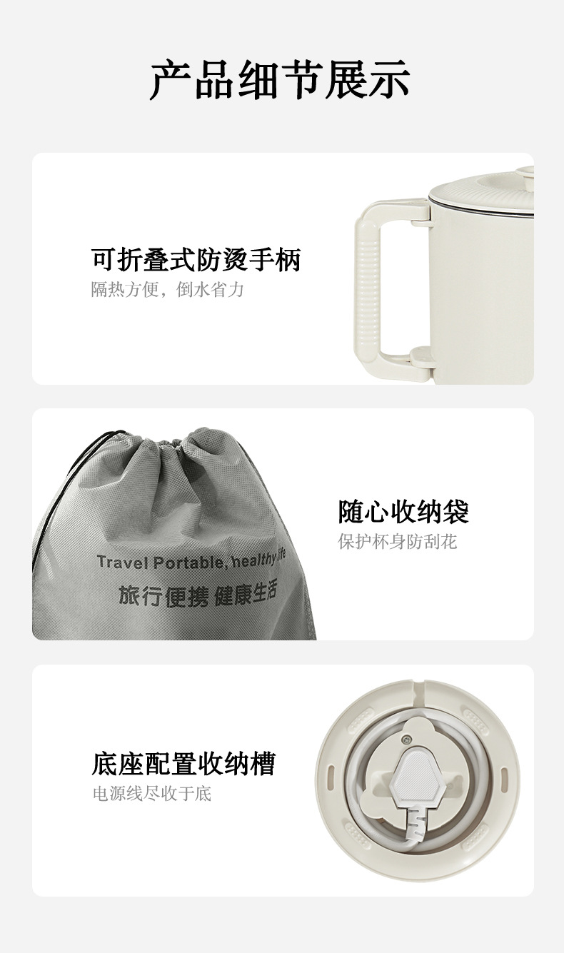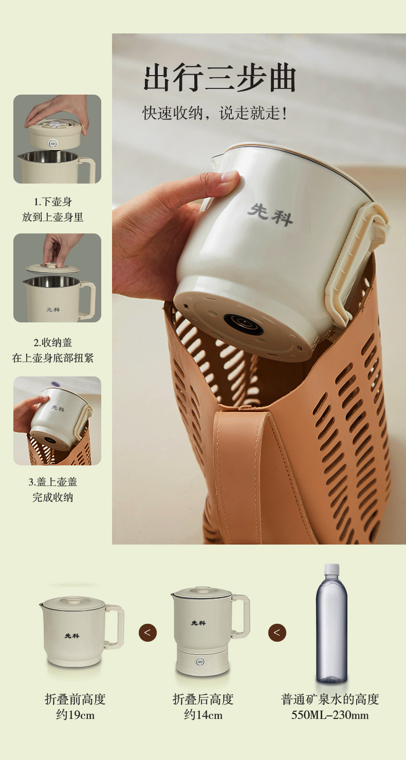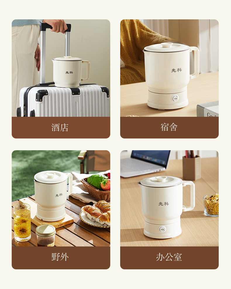 Hervidor plegable viajes de negocios hervidor portátil de acero inoxidable taza de agua eléctrica mini hervidor de agua caliente doméstico al por mayor