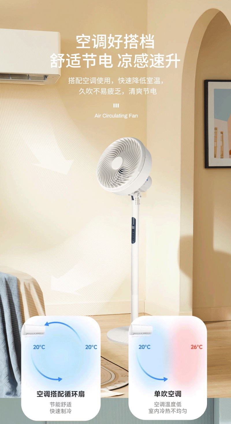 Ventilador de circulación de aire, ventilador eléctrico, nuevo ventilador de piso doméstico, tono ligero, turbo vertical, ventilador eléctrico de dormitorio de escritorio, transfronterizo
