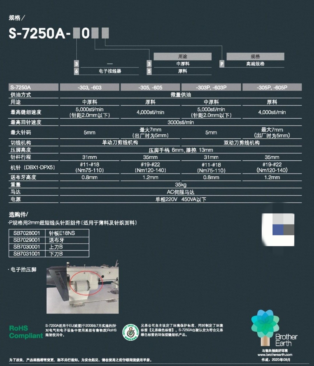 Máquina de coser plana eléctrica industrial multifunción Brother S7250A de alta velocidad de aguja