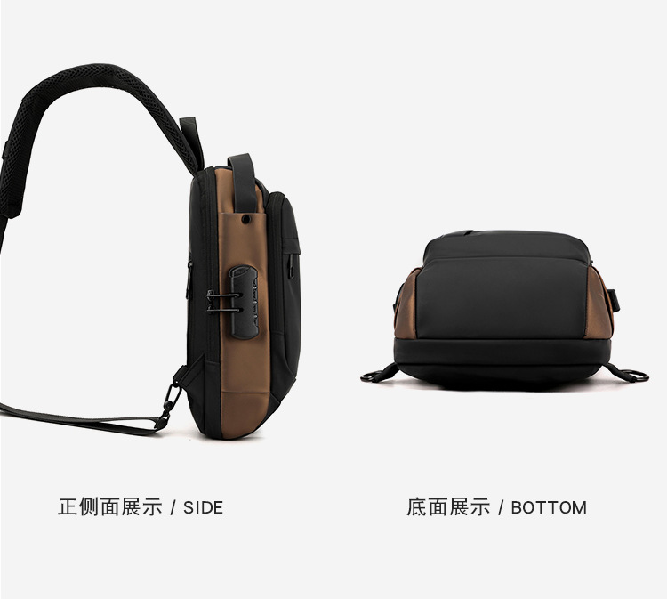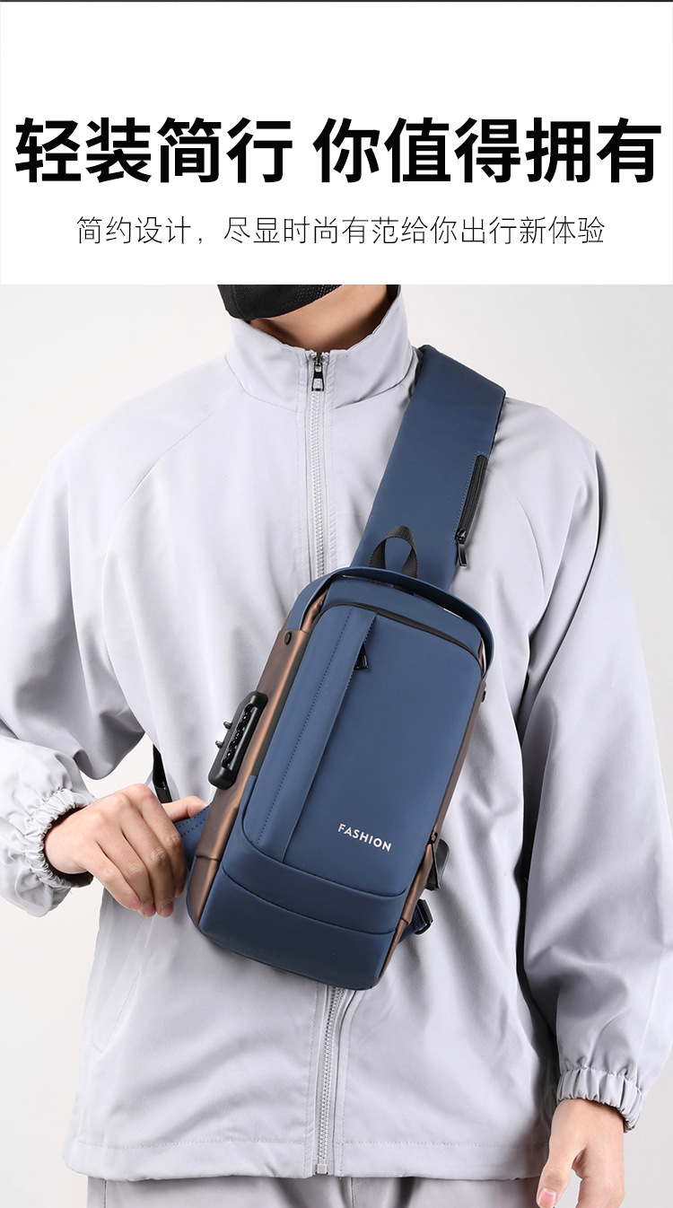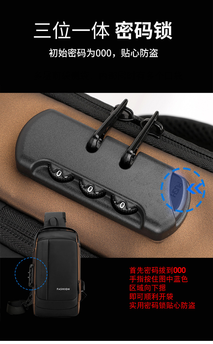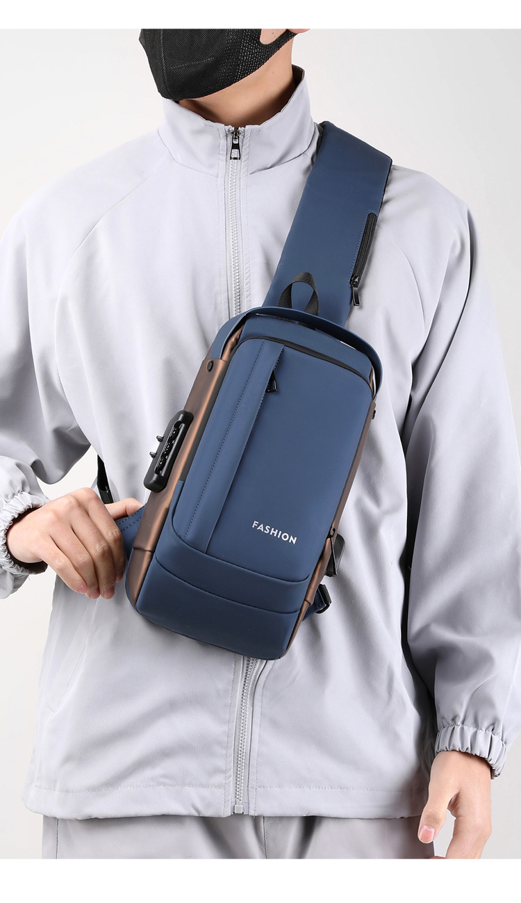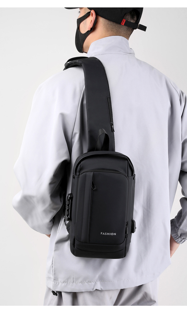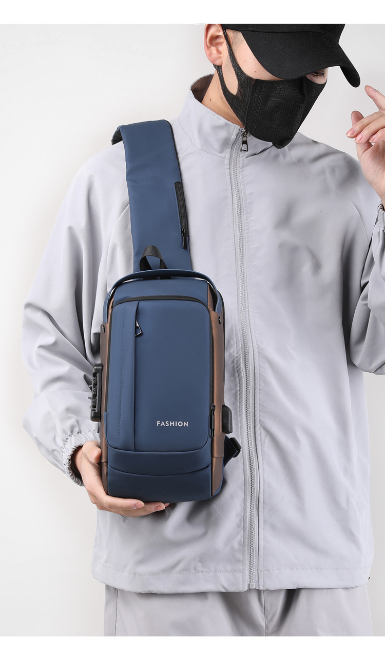 Bolso de pecho para hombre, bolso cruzado, mochila de gran capacidad, multifuncional, con bloqueo de contraseña, antirrobo, bolso para hombre con carga USB