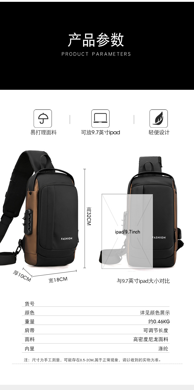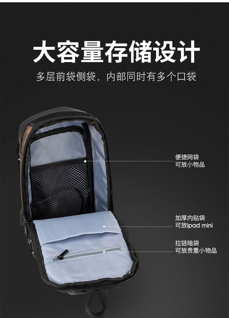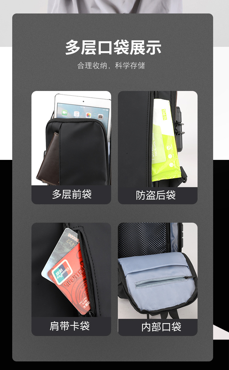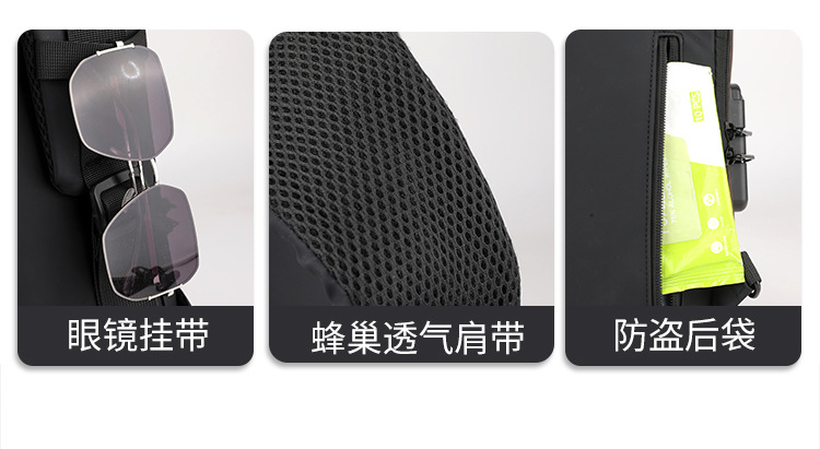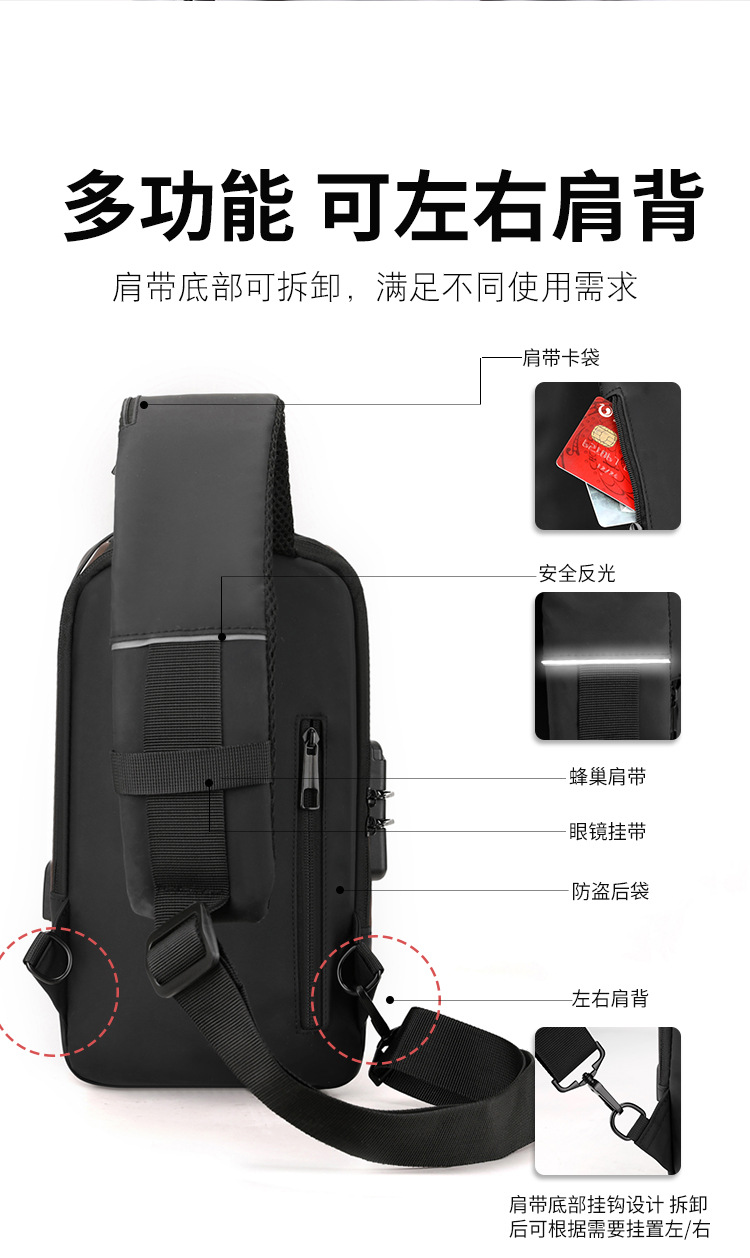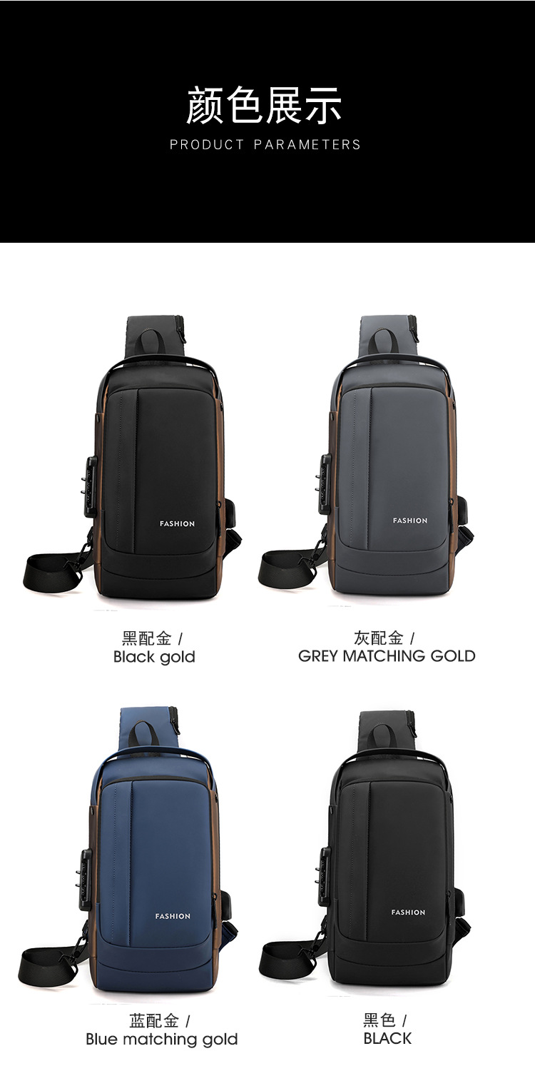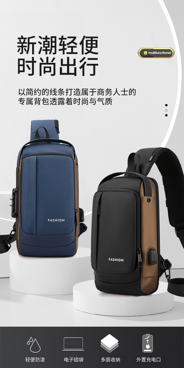 Bolso de pecho para hombre, bolso cruzado, mochila de gran capacidad, multifuncional, con bloqueo de contraseña, antirrobo, bolso para hombre con carga USB