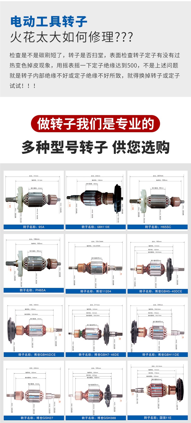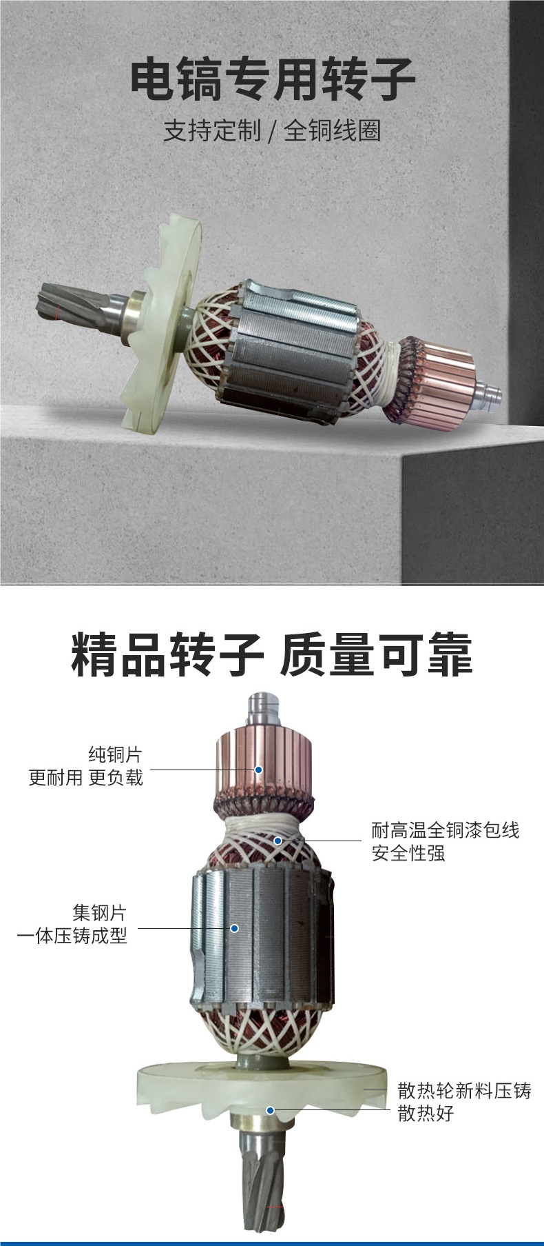 Accesorios para rotor de pico eléctrico, todos los accesorios para herramientas eléctricas de rotor de motor de cobre, ventas directas de fábrica, personalización de soporte