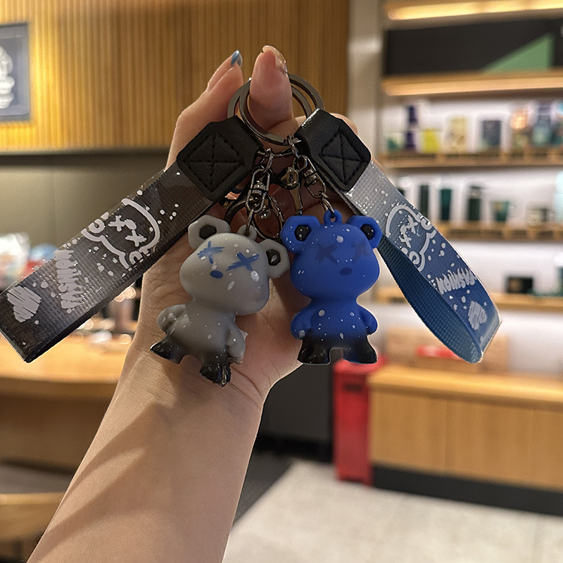 Creativo colorido graduado estrella oso llavero de goma suave moda moda bolsos llavero de automóvil personalidad colgante pequeño