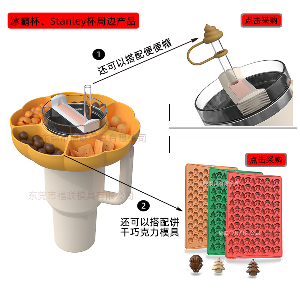 Plato de bocadillos de silicona transfronteriza adecuado para 30oz taza de coche Stanley 40oz plato de fruta plato de helado