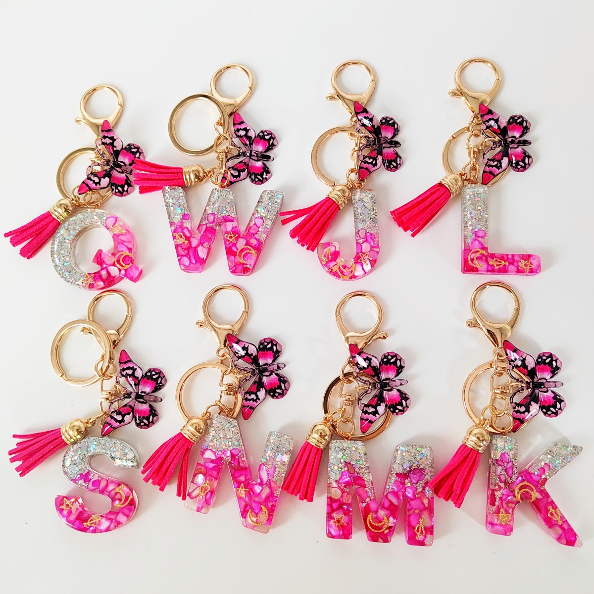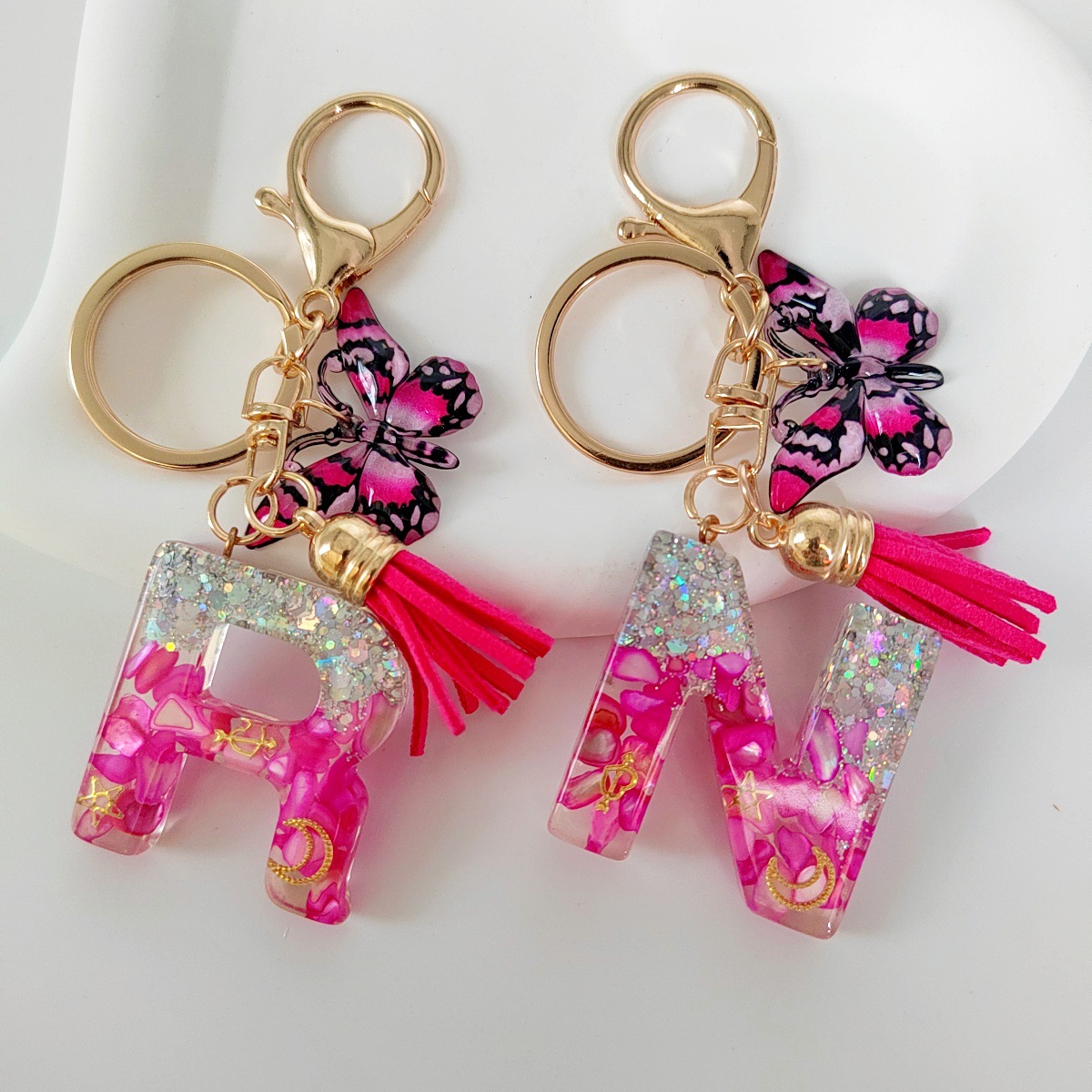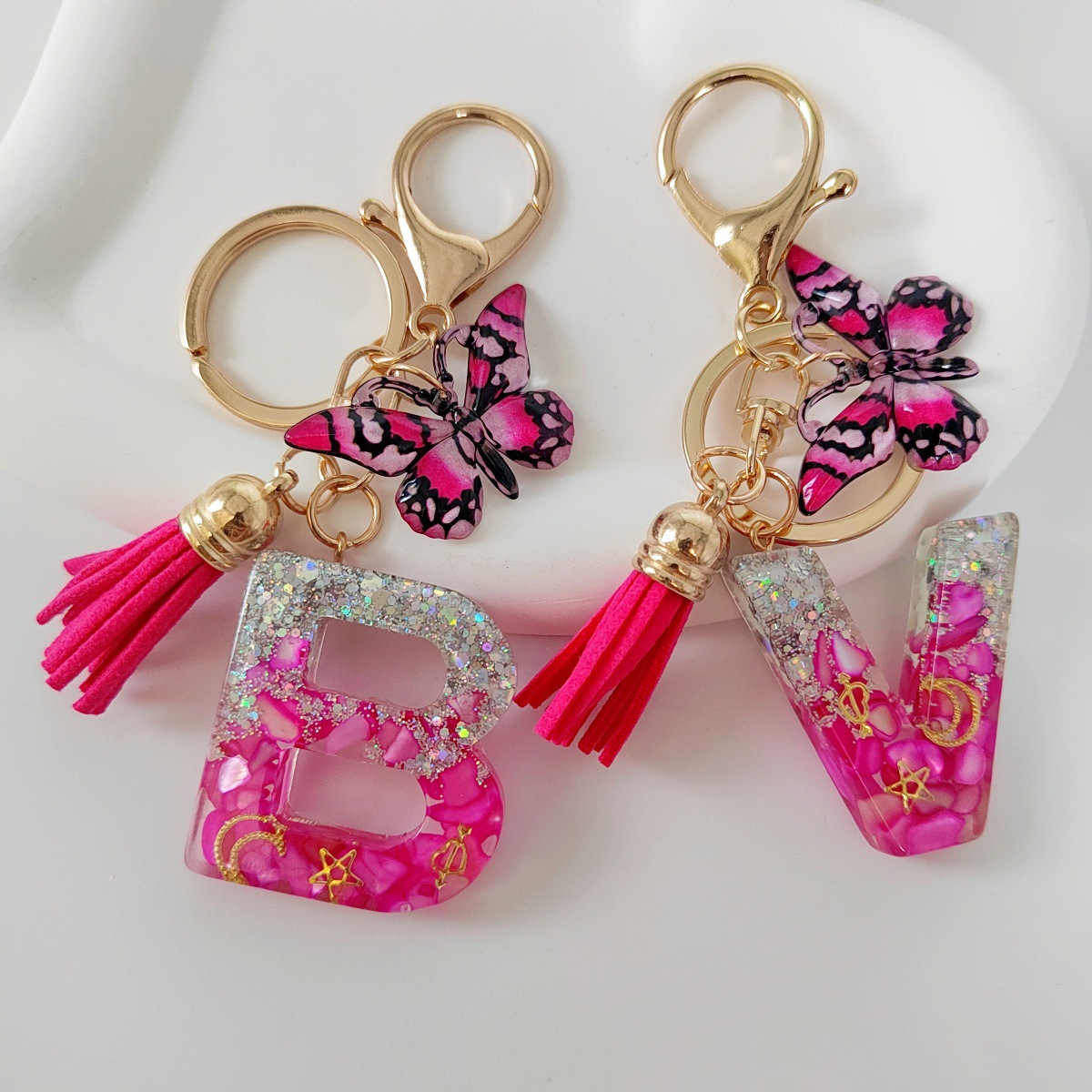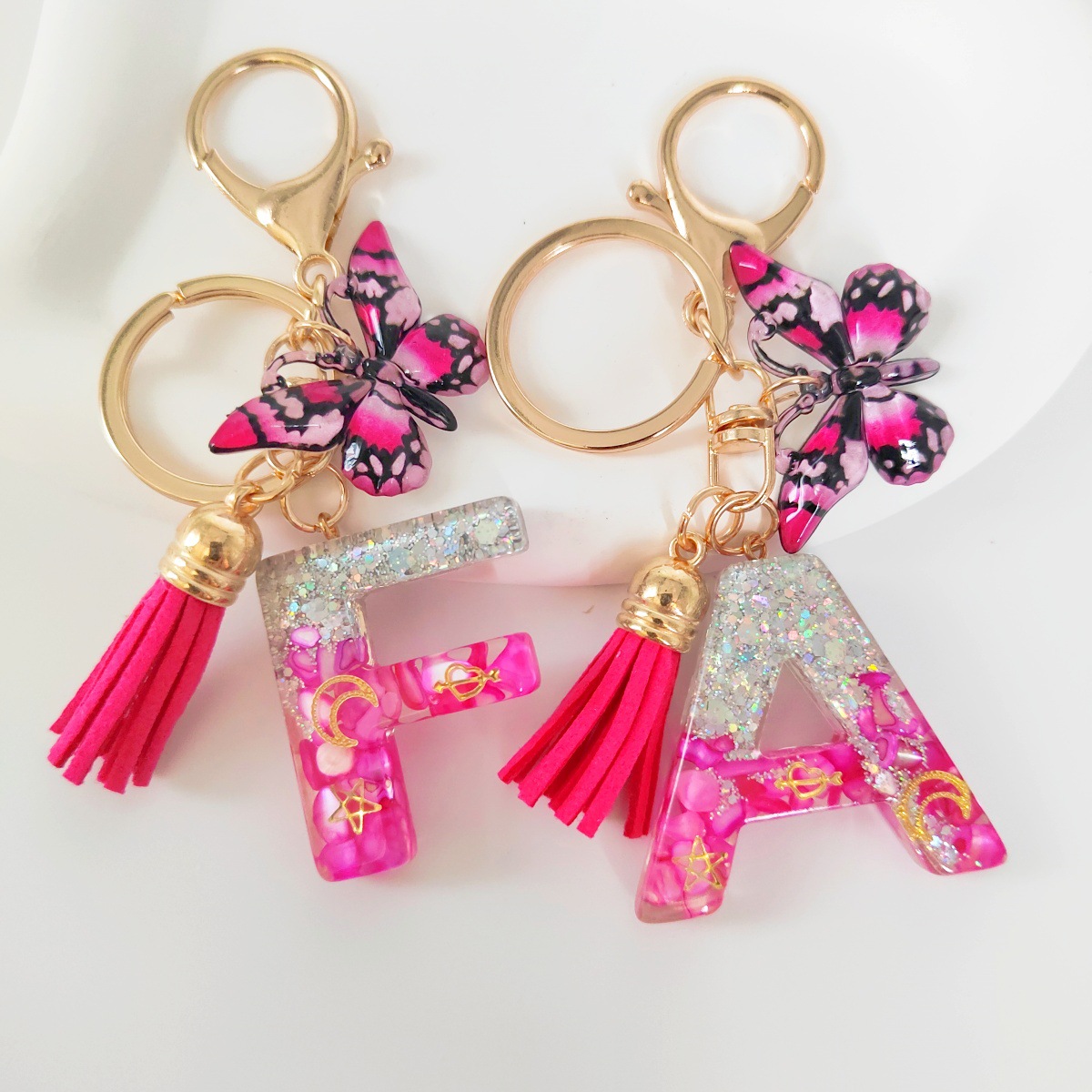 Inventario transfronterizo nueva resina bicolor mariposa borda llavero colgante estrella luna accesorios de joyas