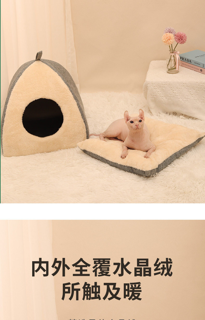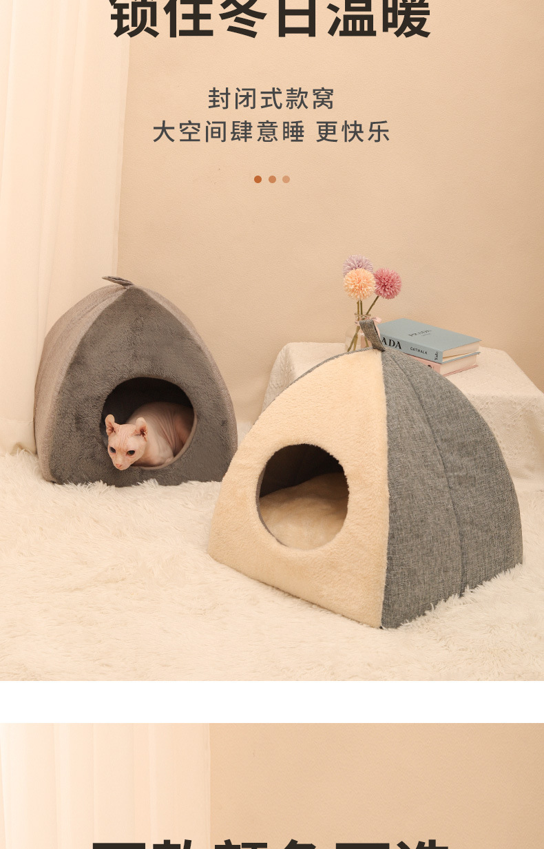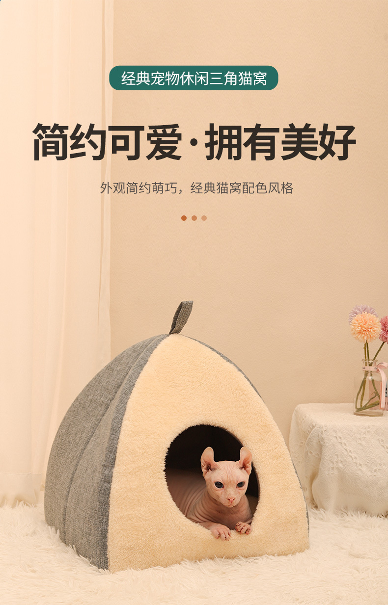 Nuevo nido para mascotas, nido para gatos cerrado en forma de triángulo, cómodo nido para perros pequeño disponible en cuatro estaciones, suministros para mascotas