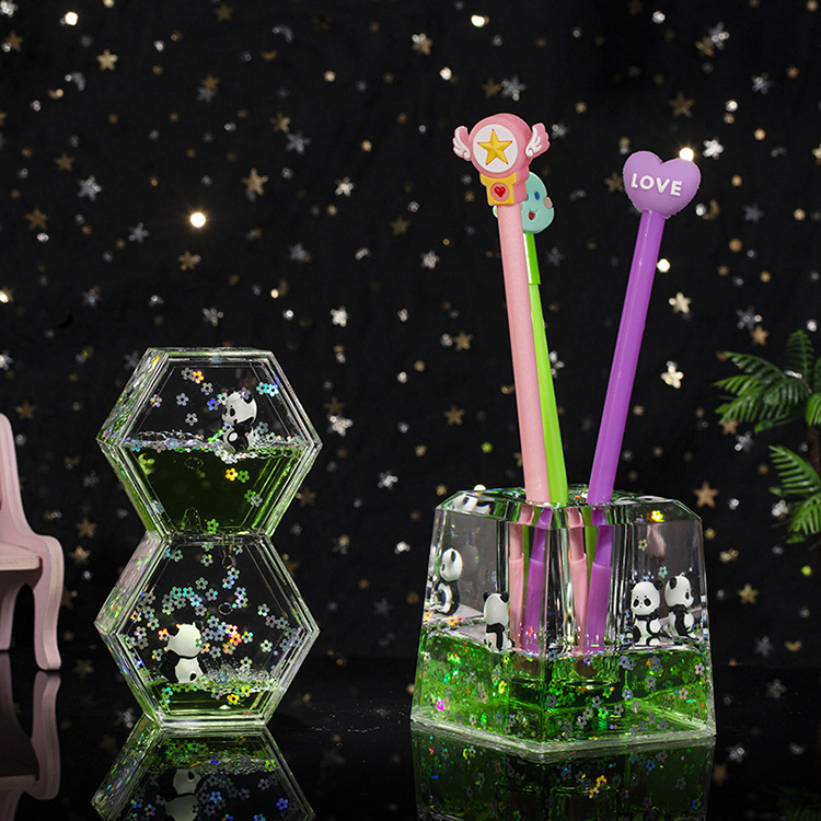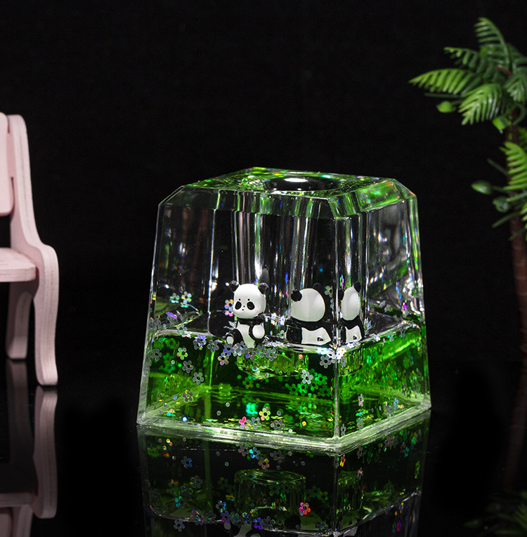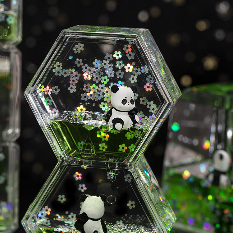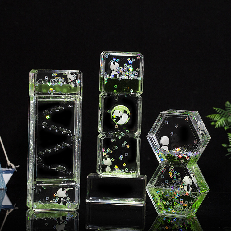 Acrílico transparente panda gota de aceite reloj de arena líquido botella de arena flotante regalo de cumpleaños para niños decoración de escritorio de oficina