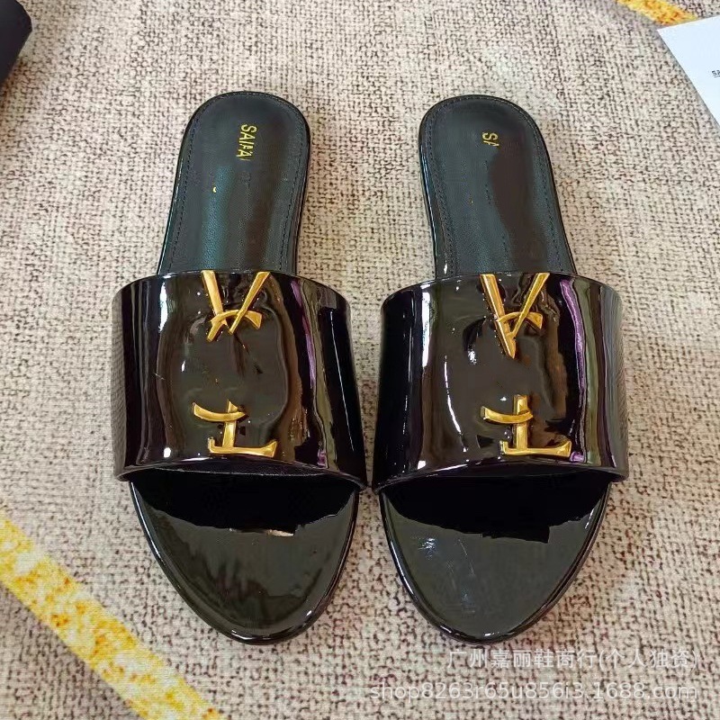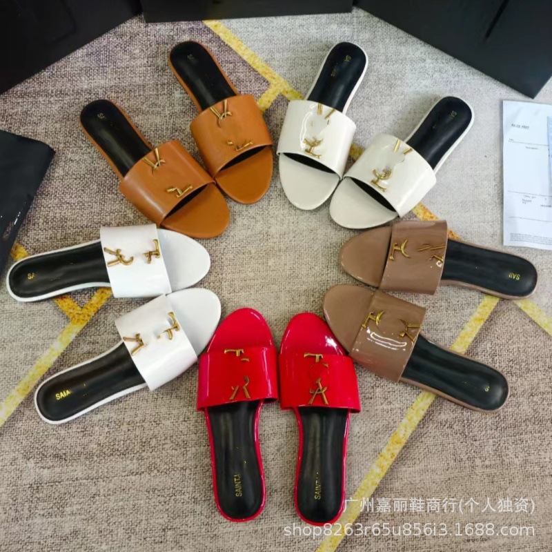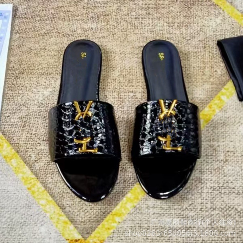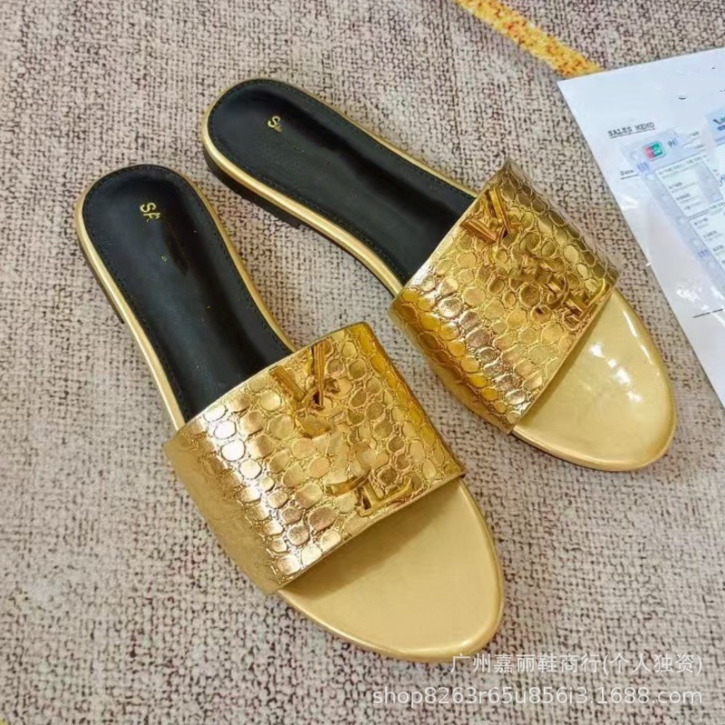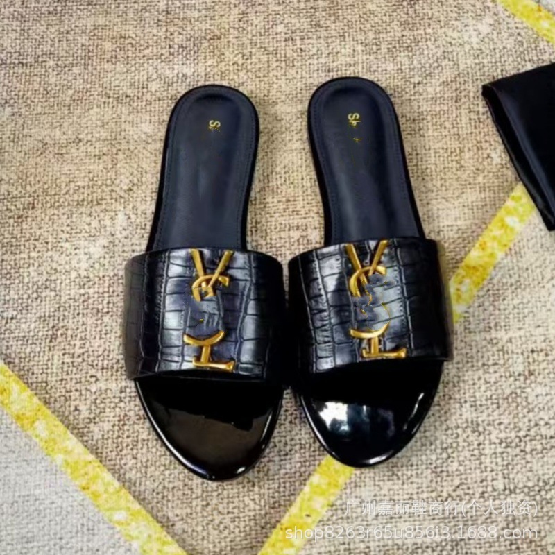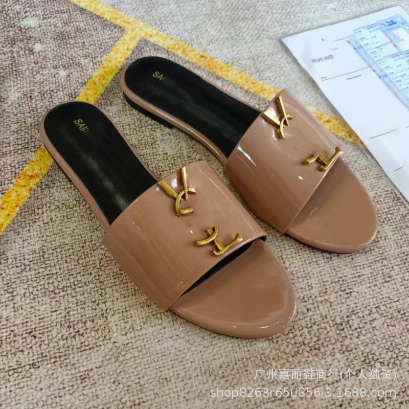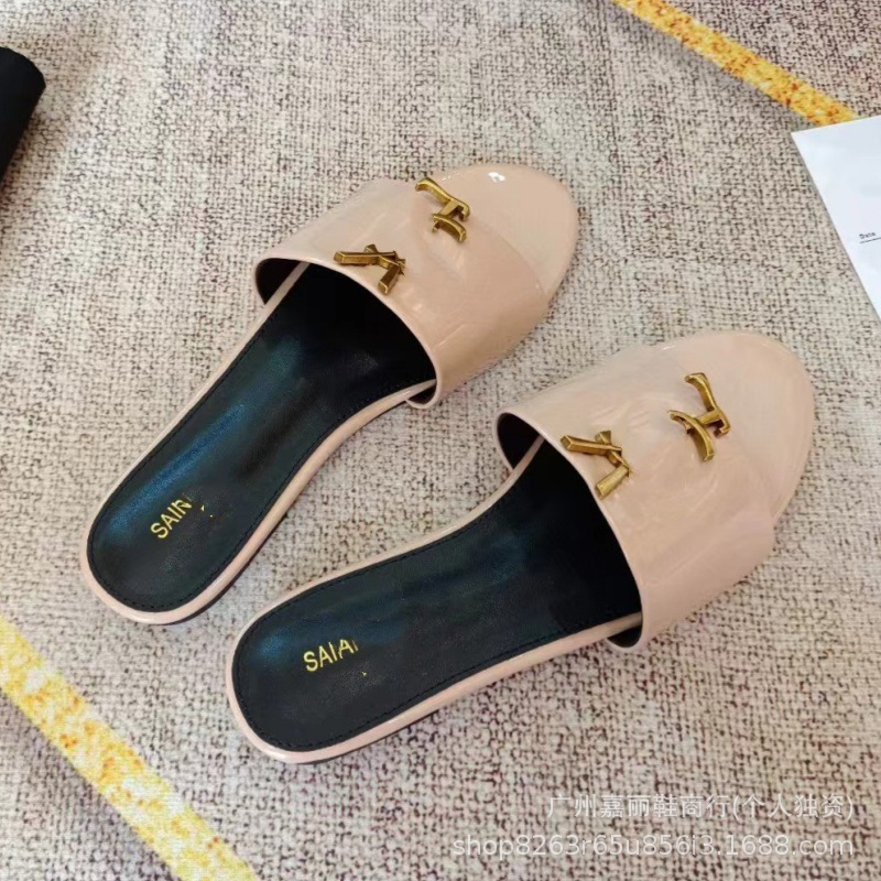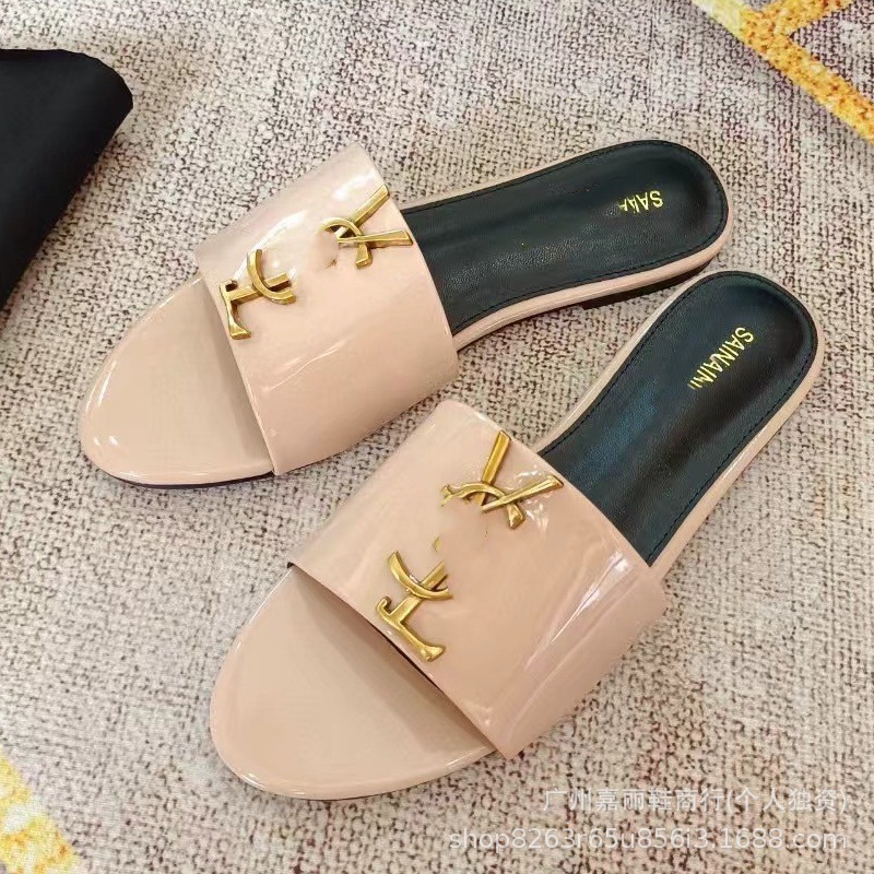 Shengjia 2025 nuevas sandalias planas de primavera y verano de gran tamaño zapatillas de un solo zapato con hebilla de letra cómoda y versátil al por mayor