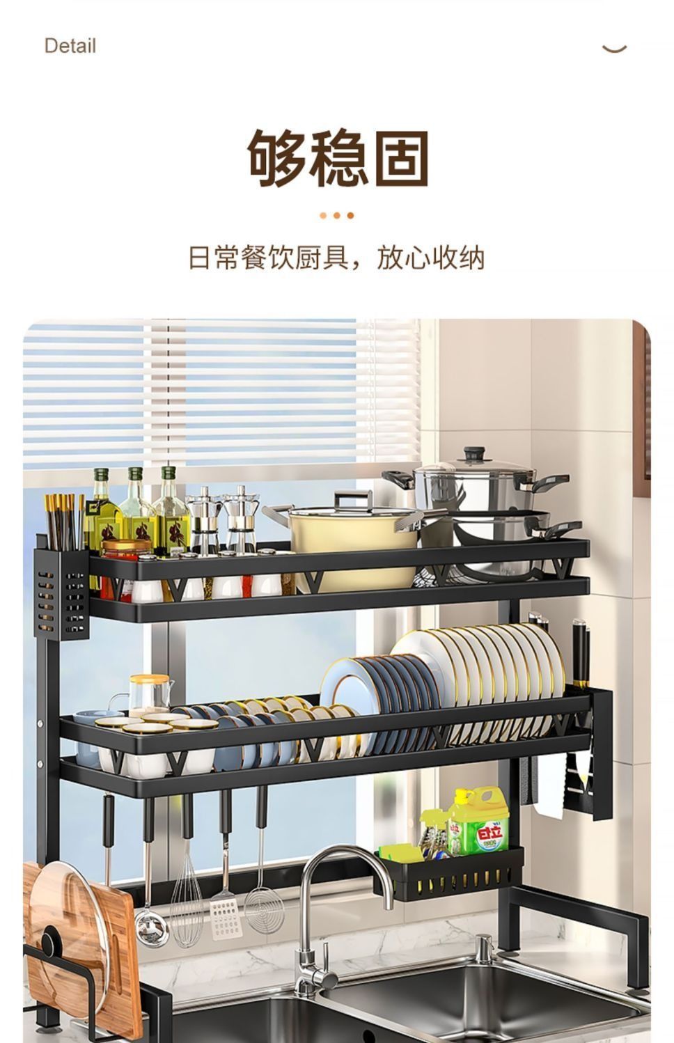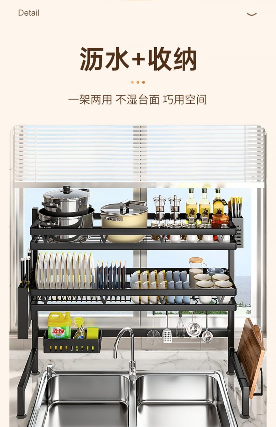 Estante de fregadero de cocina Estante de almacenamiento para platos de encimera Estante de lavavajillas multifuncional Estante de fregadero Estante de drenaje Hogar