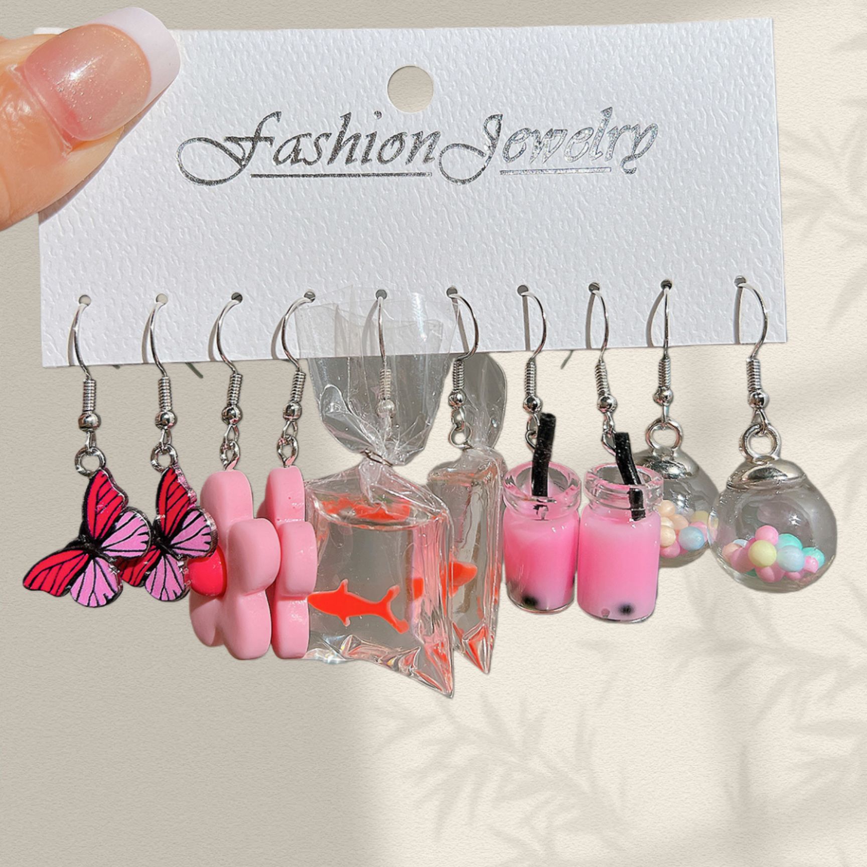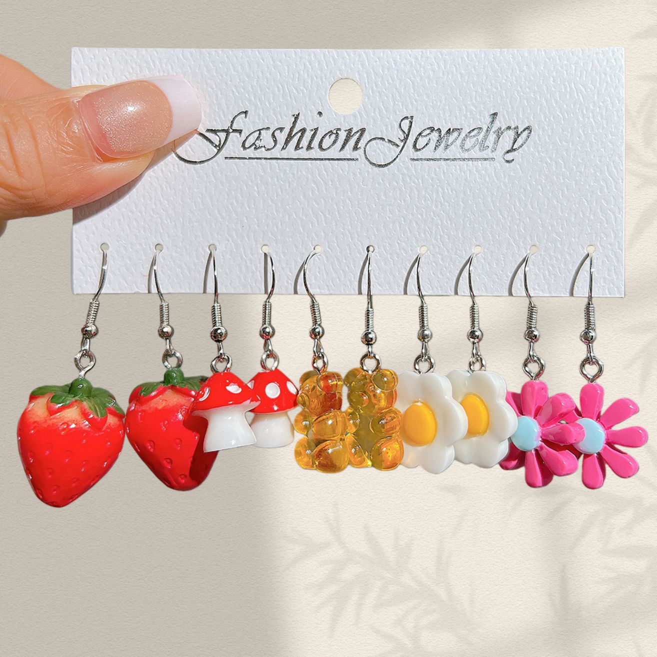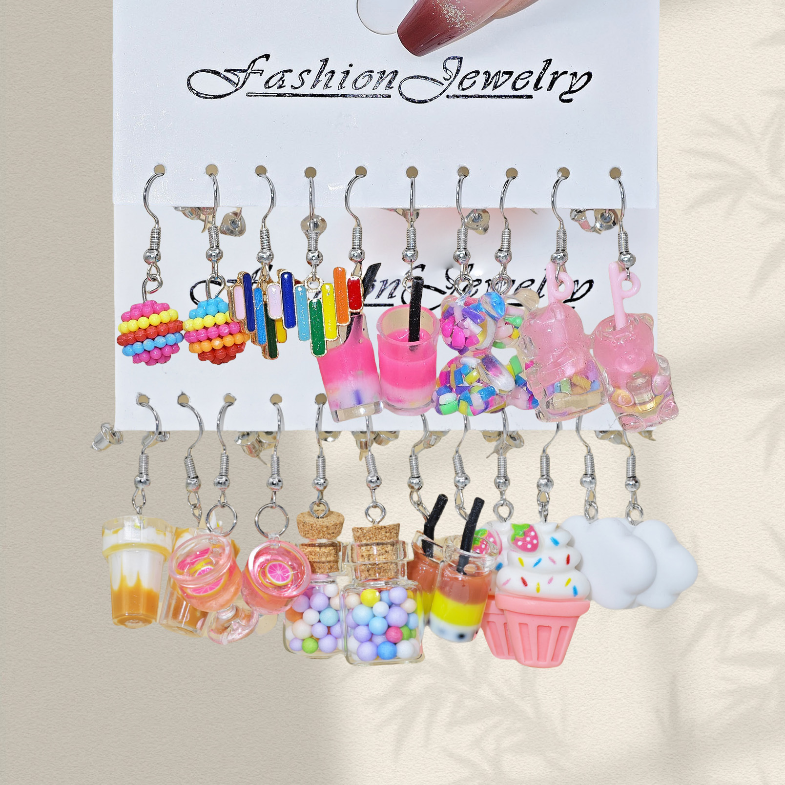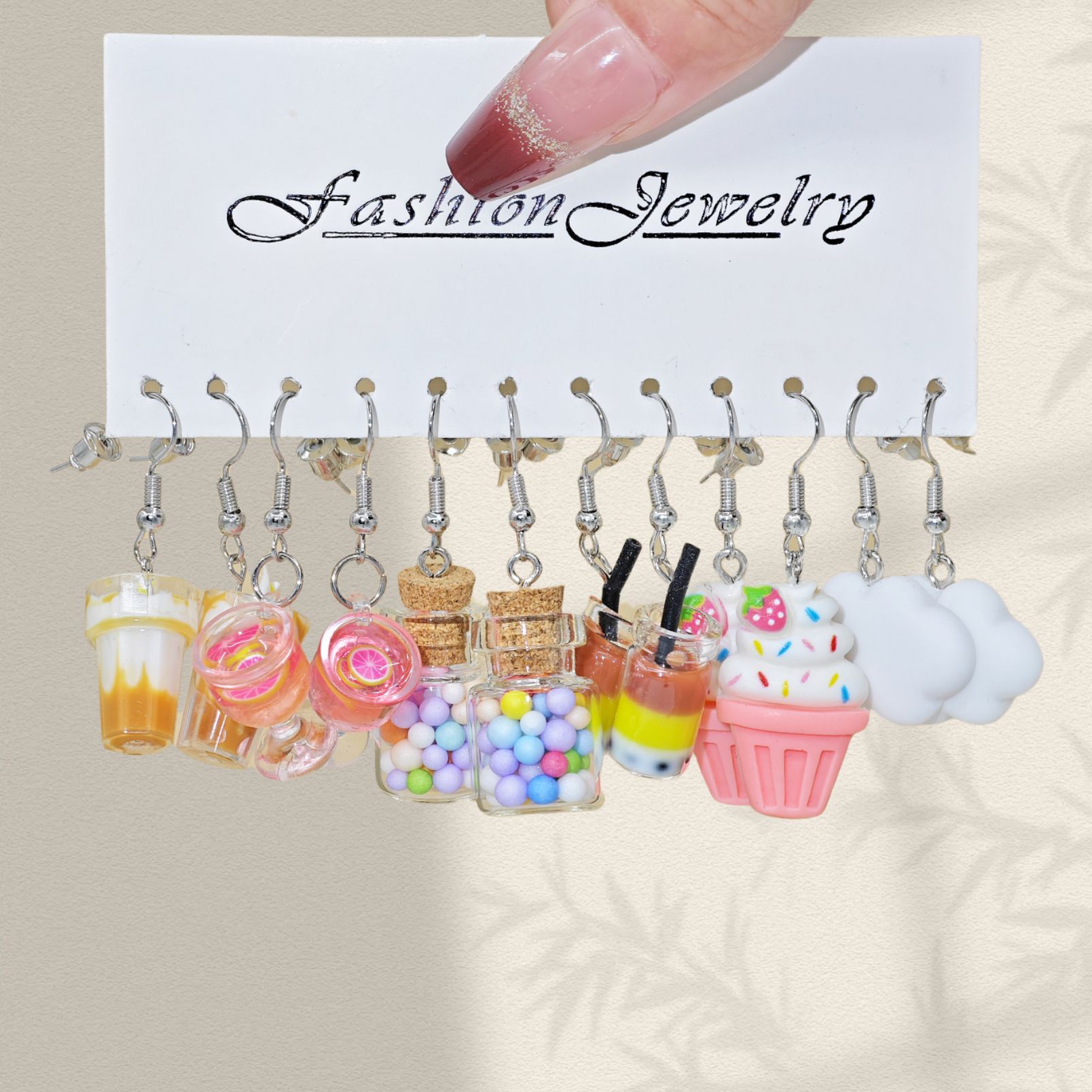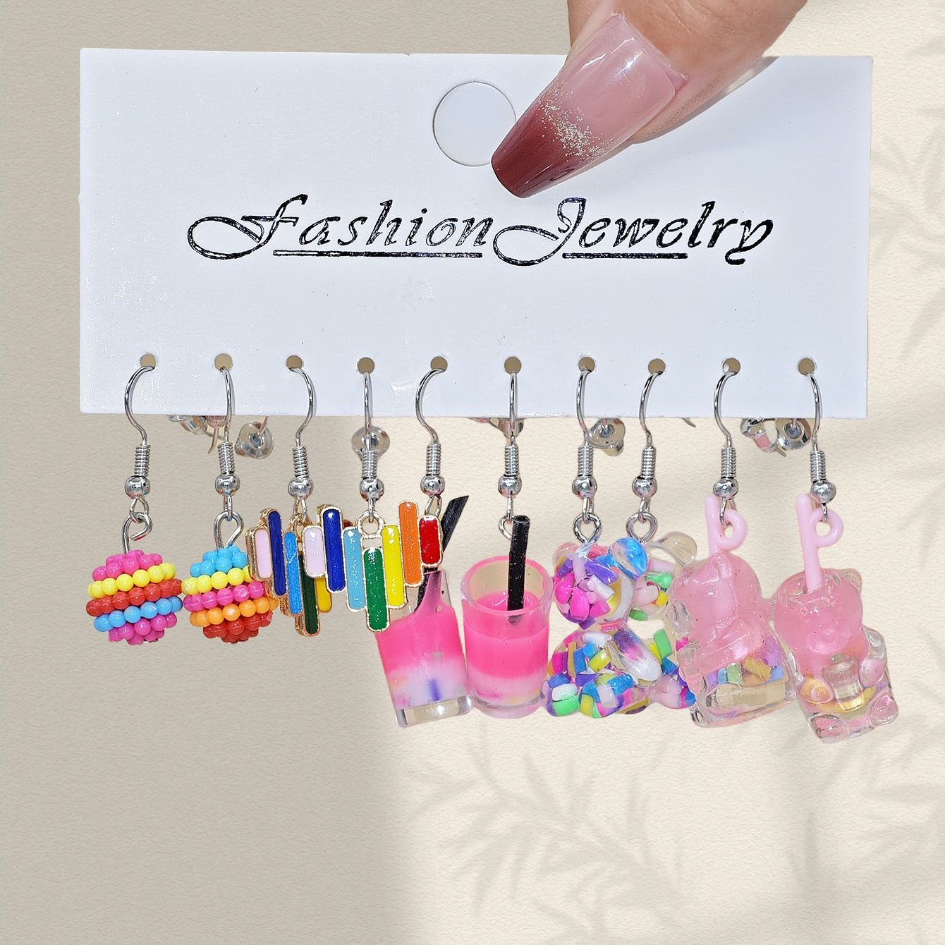 Europa y los EE.UU. dibujos animados transfronterizos animales osos lindos creativos simulación de alimentos aretes de resina de té de leche por mayor